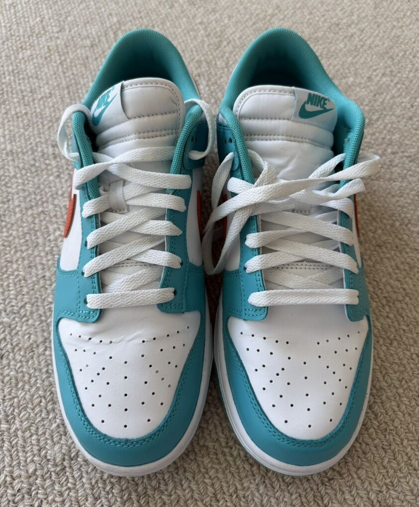 VenmoNike Dunk Low Shoes Mens 9.5 Miami Dolphins Teal Orange White Sneakers