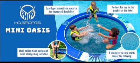 We have one HO Sports Mini Oasis 8’ Inflatable Water Ring Float 1834482 #99975 available. This water ring has been used and comes out of box. We have inspected and tested this item to make sure that it is in working condition.
