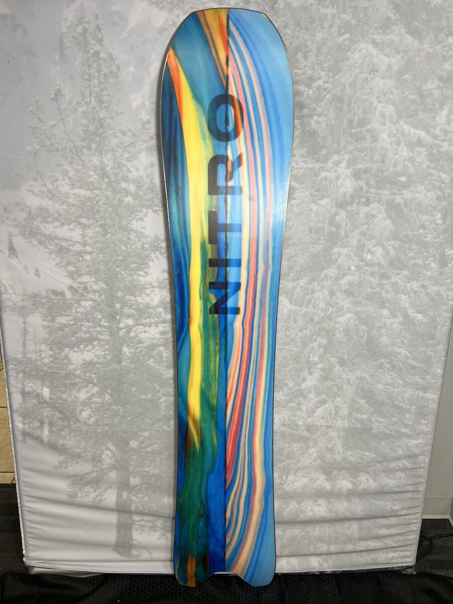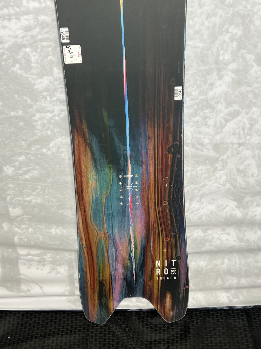 All these items you see can be purchased and shipped from our shopat www.ajmotion.com If you're looking for a one-board quiver that absolutely rips in powder but doesn't hold back on fast groomers, nothing comes close to the "Powgroomer" Nitro Squash Snowboard (so good they invented a category just for it). Full camber, with a long nose and medium swallowtail shape, the Squash floats like a butterfly but still rails its heart out when you push it. For all-mountain freeriding at its finest, even for those who don't care for vegetables. Size: 163 CM Shape: Camber Flex: Stiff Base Condition: Excellent - An Excellent Base shows almost no signs of wear and tear on the snowboard's edges or base. Top Sheet Condition: Excellent - An Excellent Top Sheet shows almost no signs of wear and tear. Aj Motion Sports Ski Gear Outlet 9432 South Union Square (650 E)