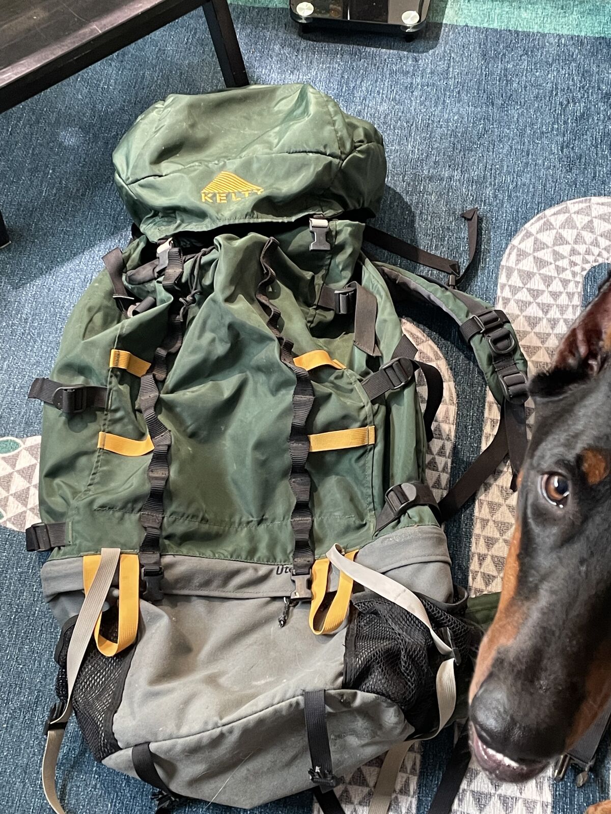 Large capacity backpack, clean and in good condition and function (zippers, etc) and Coleman Brighton 40° Sleeping bag (used a couple times by camping trips as an extra for guests w/o gear). $45 cash, $50 all other payment methods.