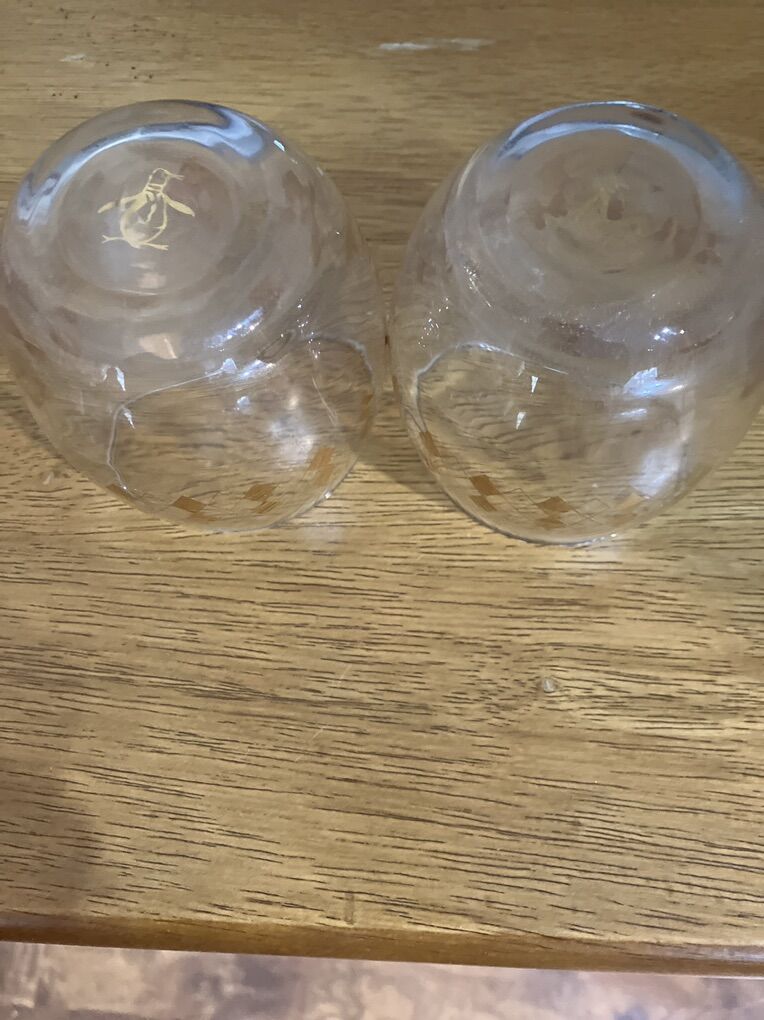 Vintage Set of 2 1960s Drink Glasses Excellent Condition Cute Design with Penguin etched on bottom of glass Cash only please