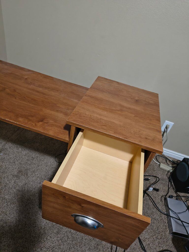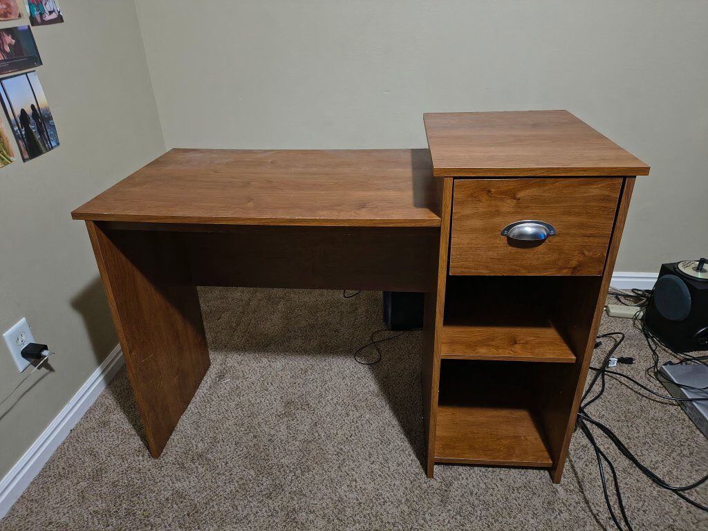 VenmoHi there! we no longer need this desk. It's been with our family for a couple of years, but we recently got a new one. So we don't really need It anymore. It's In pretty good condition besides for some scratches and chips In the wood. It's pretty great and will take care of your stuff good!