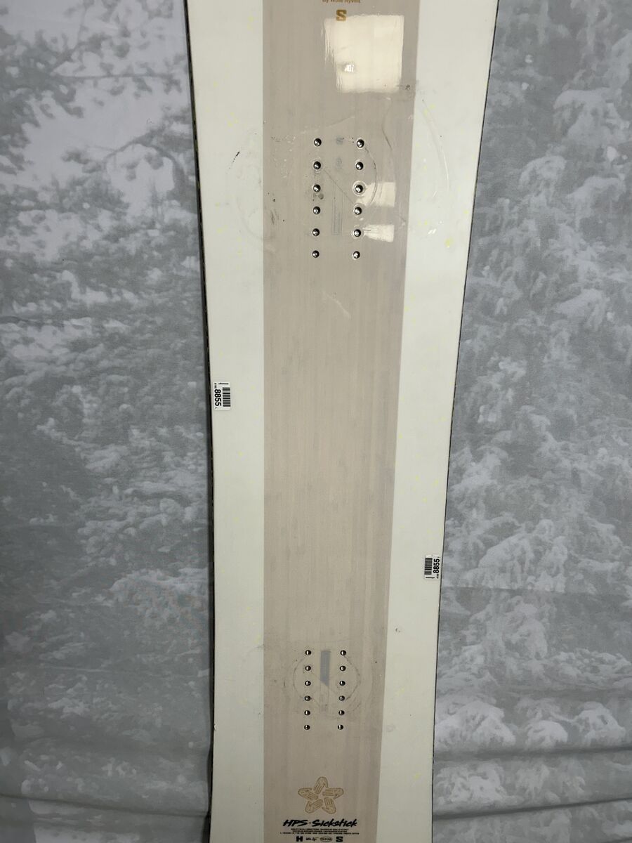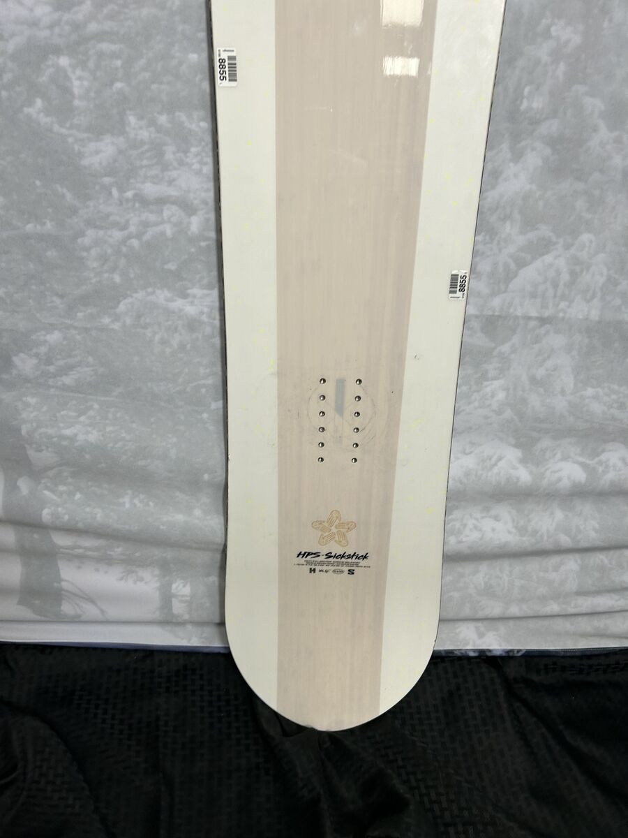 All these items you see can be purchased and shipped from our shop at www.ajmotion.com Length: 153 Cm Width: 261 mm Flex: 5/10 (1 soft - 10 stiff) Description: The original freestyle powder board, the Sickstick, was an instant classic upon its inception. Having evolved over time, this hybrid board maintains its freestyle DNA and premium, natural construction while also meeting modern freeride demands with a responsive flex and tapered twin shape. Turn 6-inch days into 12 and stomp those switch landings. Condition: Base Condition: Excellent - An excellent base shows almost no signs of wear and tear on the snowboard's base or edges. Top Sheet Condition: Excellent - An Excellent Top Sheet shows almost no signs of wear and tear with no chips and only a handful of very small scratches or scuffs.