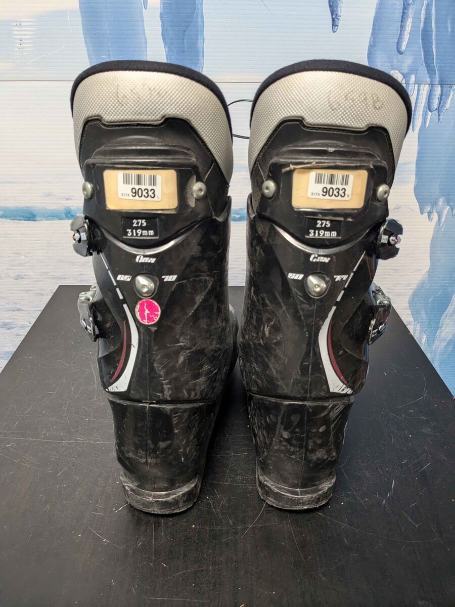 27.5 Mondo point Fair - Boots in fair condition exhibit some signs of wear and tear, particularly on the sole. This involves chipping, scratching, and scuffing on high-impact areas like the heel and toe lugs. The liners in these boots are generally quite worn-in.