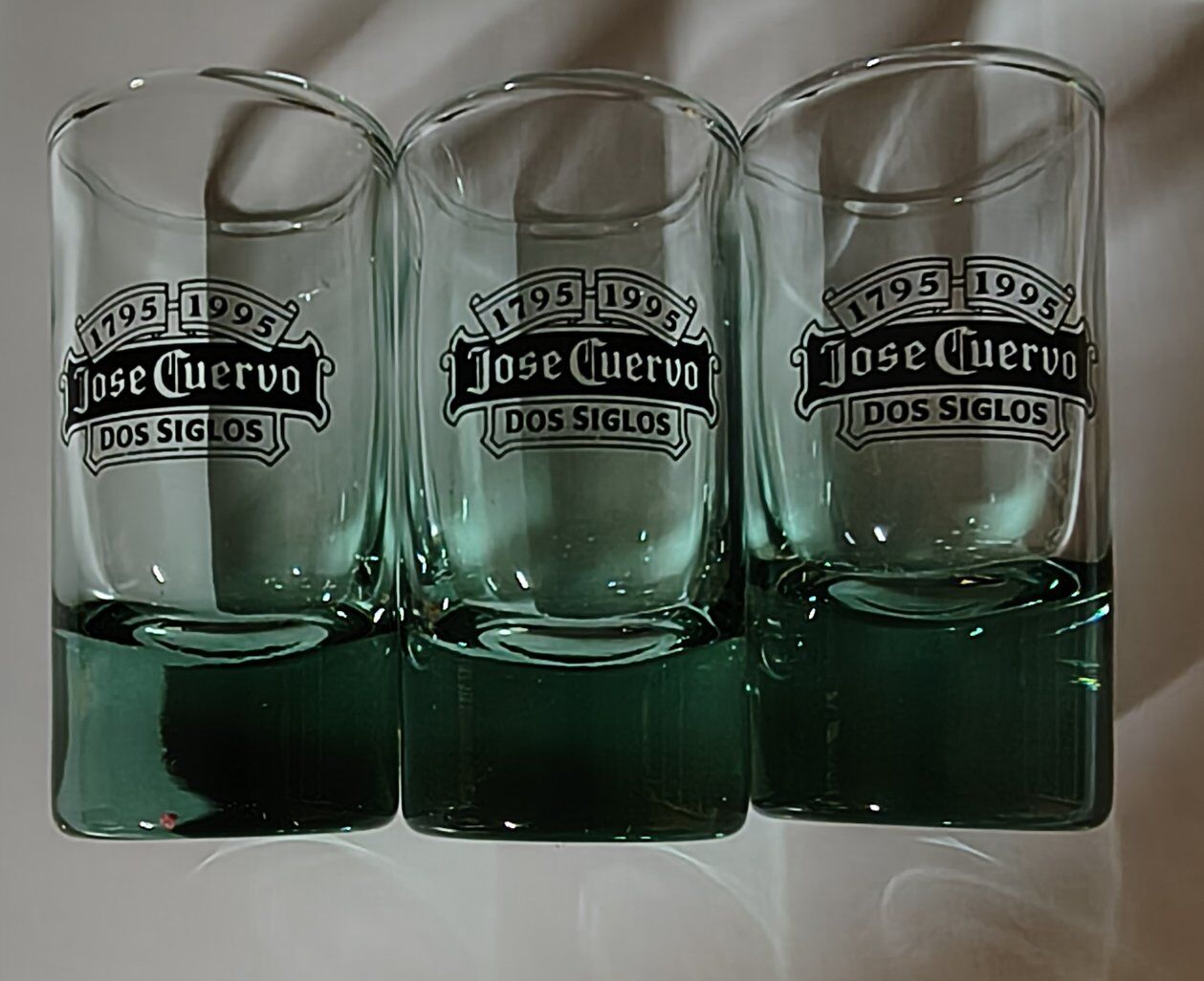 GooglePayJOSE CUERVO Dos Siglos Shot Glass 1795 1995 Ltd Edition Green Tint Glass Set of 3