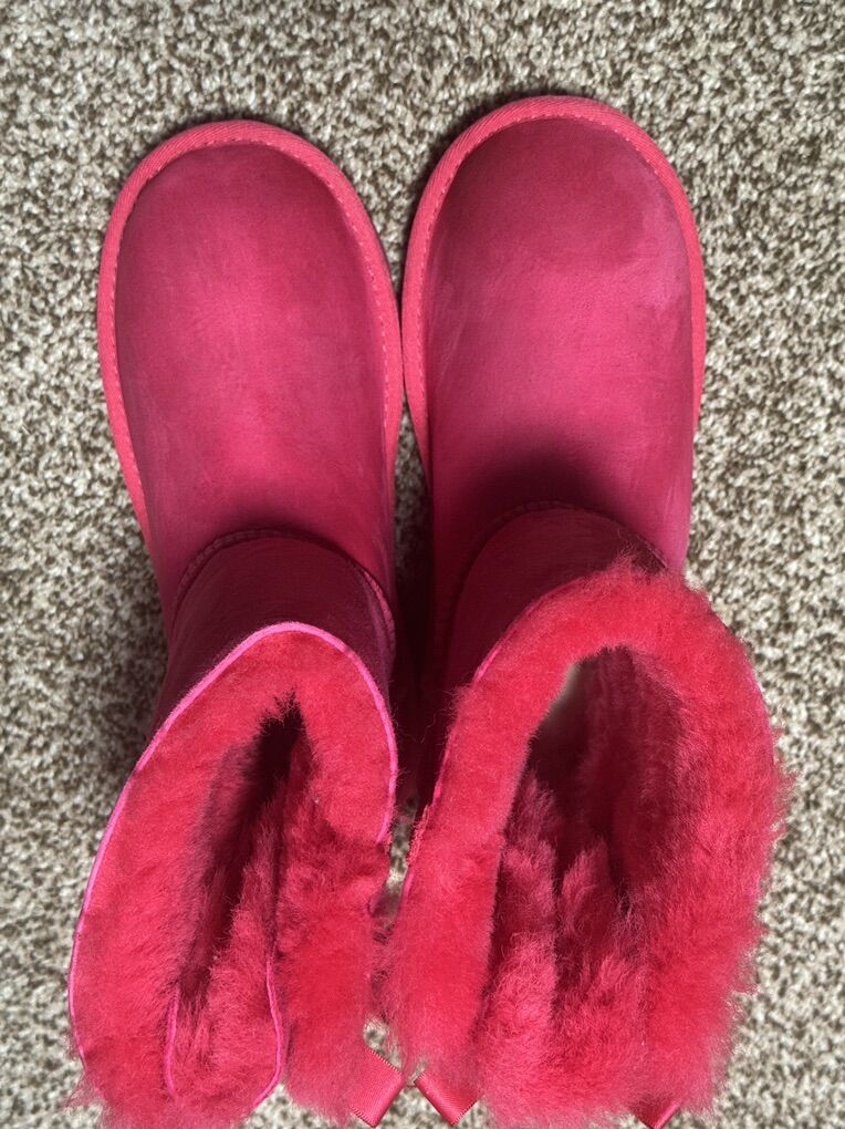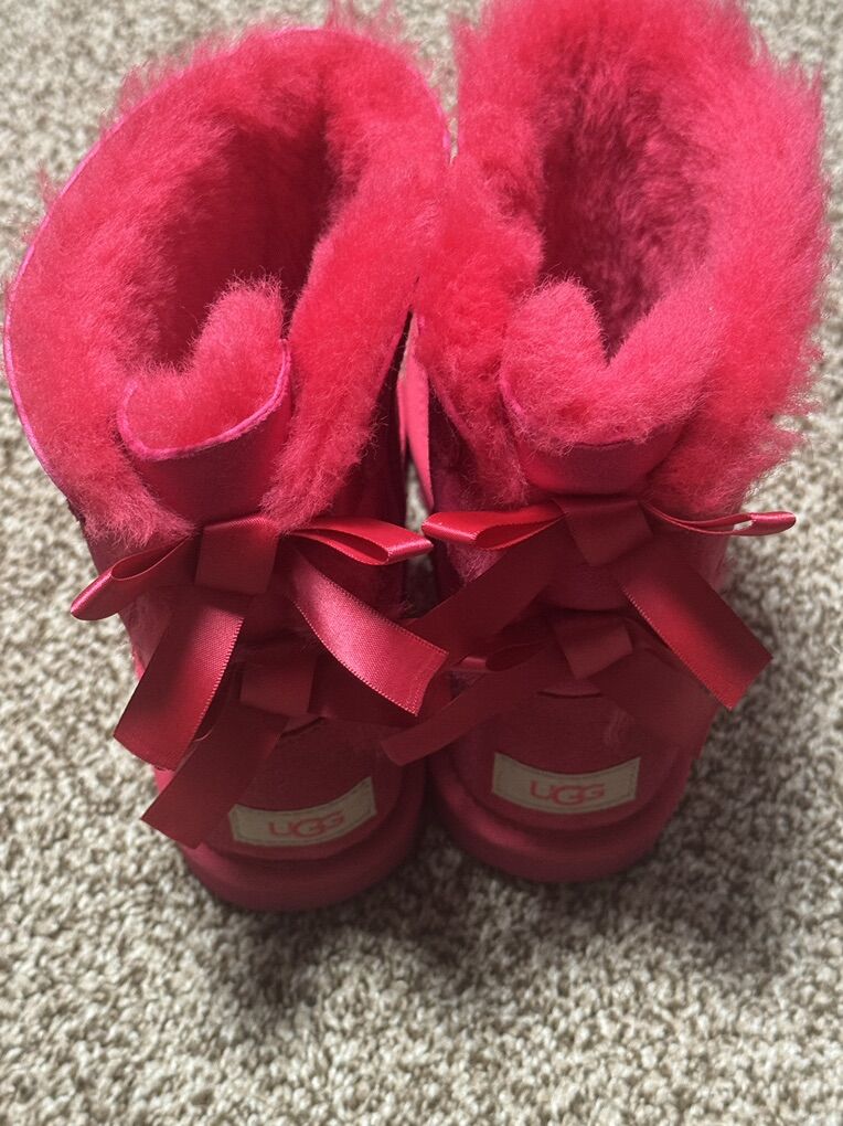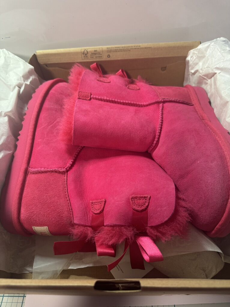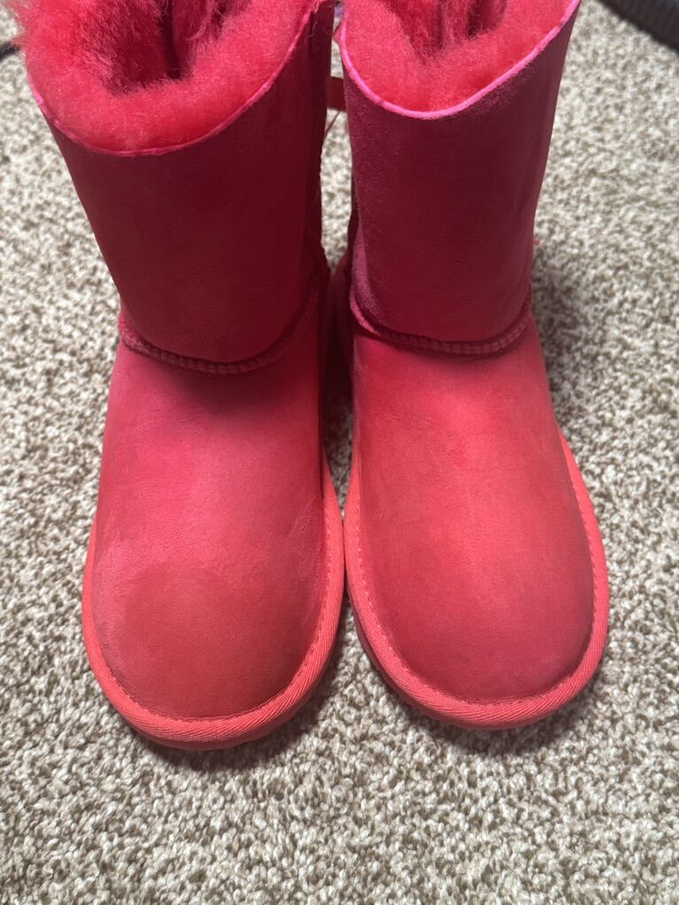 UGG KIDS BAILEY BOW II BOOT PINK SUEDE SHEEPSKIN WOOL LINED BIG KIDS US 4 EUR 36