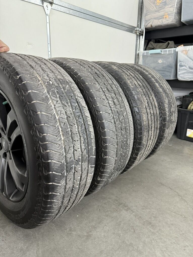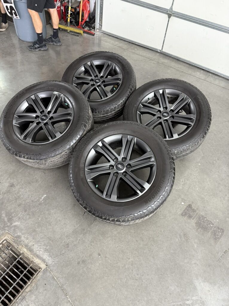 Wheels are 20in OEM wheels off a 2023 ford f150 Performace package truck. Wheels are in Amazing shape, no curb rash, dings or major damage on them, amazing looking set of f150 takeoffs. All the center caps as well as TPMS are included. Tires are 275/60/20 hankook dynapro at2, top of the line tires, no patches or plugs, tires have great tread life.