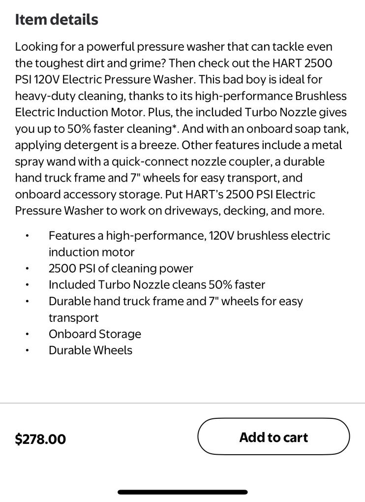 VenmoNew HART 2500 PSI at 1.1 GPM 120V Electric Brushless Cold Water Pressure Washer. Box is still sealed!