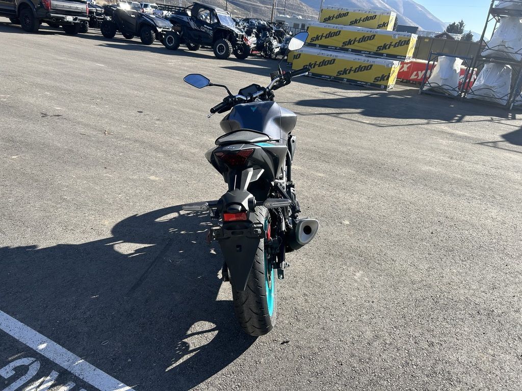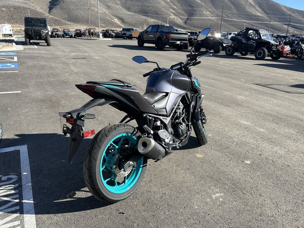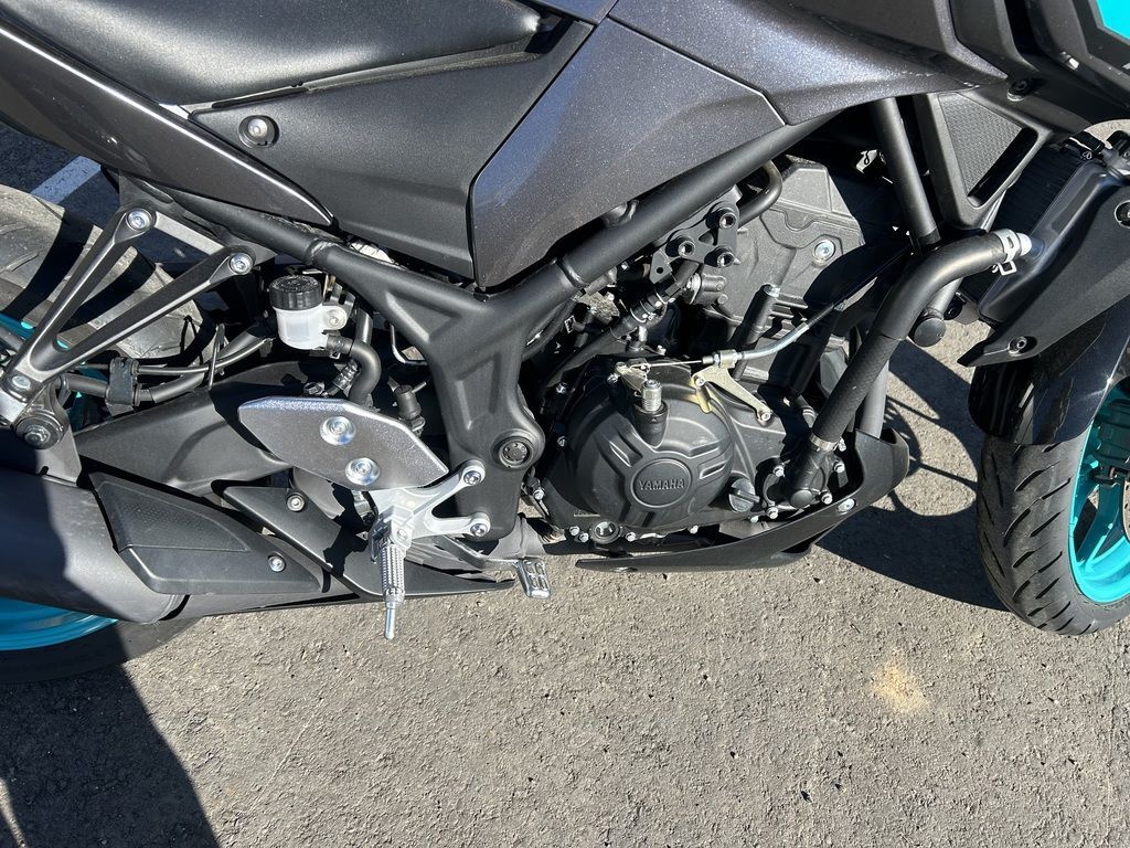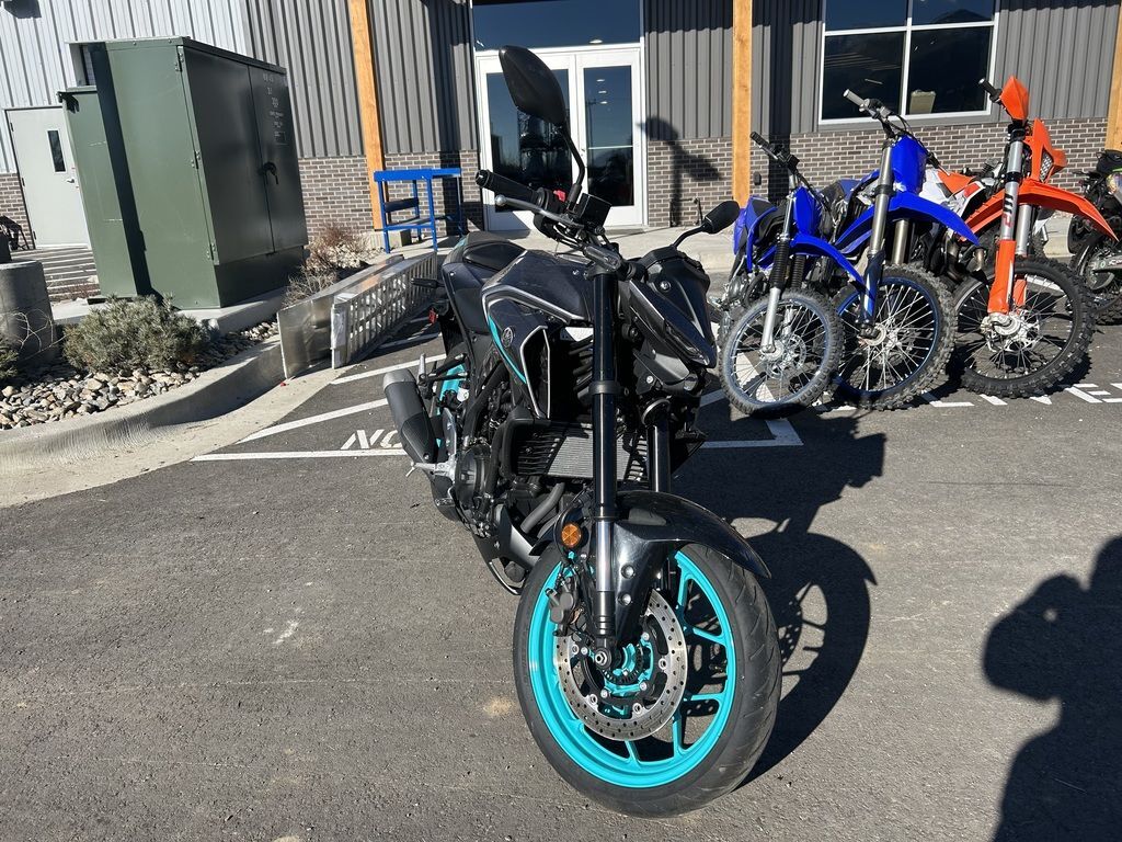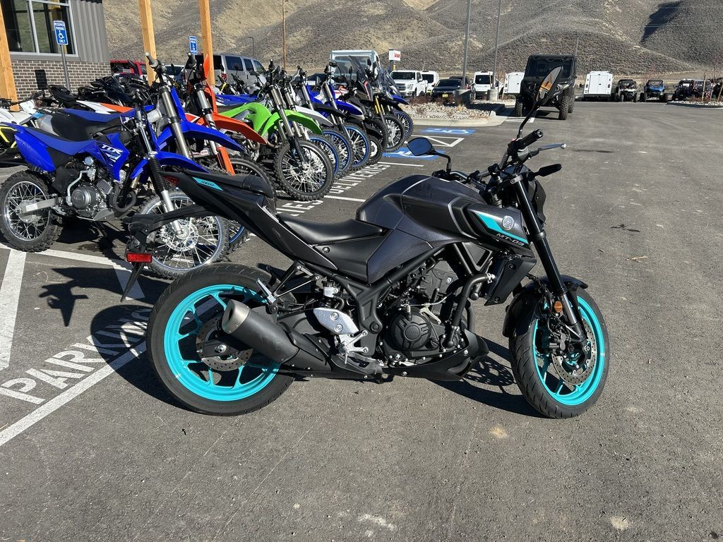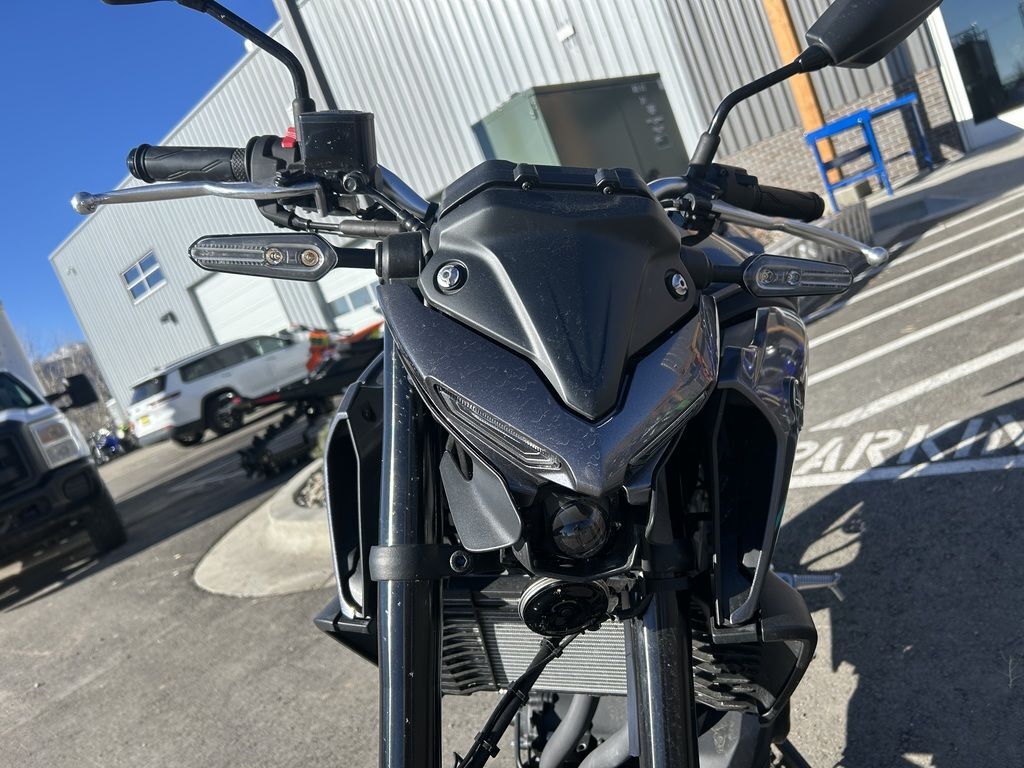 2024 Yamaha MT-03THE DARK BECKONSYour entry to the Dark Side. Built to thrill with a twin-cylinder engine, aggressive looks and serious street presence.Features may include:TOP FEATURESSmooth & Easy To Ride Power DeliveryThis 321cc liquid-cooled two-cylinder engine features lightweight forged pistons and carburized connecting rods, delivering easy to manage power in the low rpm range with strong high rpm power. The extremely light clutch feeling makes the MT-03 even more fun in the city, while its offset cylinders and advanced fuel injection system ensures smooth throttle response.Dual Position Lights with Singular LED HeadlightThe dynamic MT-03 looks cool with its dual angled position lights that emphasize its aggressive big-bike looks. A single compact and powerful LED headlight burns a hole through the darkness to light up the road ahead.ENGINEPotent Twin-Cylinder PowerplantYamaha’s 321cc liquid-cooled, inline two-cylinder engine delivers excellent power and performance throughout the rpm range. With a 180-degree crank design and integrated counterbalancer, the layout minimizes vibrations for a smooth, refined engine character.Smooth & Useable PowerWith double overhead cams (DOHC) and four-valve cylinder heads, the MT-03 engine provides easy-to-manage power at low rpms with strong rpm power—ultimately delivering an exciting ride with a broad spread of power.Six-Speed TransmissionA smooth-shifting six-speed gearbox ensures the rider always has the right ratio, whether riding through tight city streets or on the open highway.CHASSIS/SUSPENSIONInverted KYB® Front ForkThe MT-03 features an inverted KYB® fork with optimized spring and damping settings, delivering more solid handling when compared to motorcycles using conventional front forks.Monocross Rear ShockThe seven-step preload adjustable single-shock design is tuned to strike a balance between ride comfort and sporty performance with capability across a wide range of uses, from urban commuting to extended rides into the twisty canyons.Long SwingarmThe MT-03 is equipped with a 22.6-inch long asymmetrical swingarm that provides a planted ride during braking, cornering and acceleration.ADDITIONAL FEATURESStylish LED Turn SignalsLight-Emitting Diode (LED) elements are used for both the front and rear turn signals. Not only do LEDs offer long life with minimal power draw, they provide brilliant illumination for confidence and visibility, during the day or night. The MT-03’s dynamic appearance is reinforced by the LED signals that perfectly complement the bike’s aggressive looks.Dynamic Mass Forward DesignYamaha’s Hyper Naked bikes are instantly recognizable thanks to their aggressive and powerful design. A sculpted fuel tank cover is designed to fit snugly with the rider while the lightweight air scoops enhance the look and feel of the mass-forward body design and highlight the dynamic MT family look.Ergonomic Riding PositionWith its compact body and low 30.7-inch seat height, the MT-03 is a joy to ride whether you’re escaping traffic or having a blast out on the open road. Behind the aggressive bodywork, a specially sculpted knee area and fuel tank cover work with the high-mounted handlebars to provide an agile and ergonomic riding position.Digital LCD InstrumentationTo match the MT-03 Hyper Naked’s radical looks, Yamaha has fitted a stylish LCD meter that provides easy-to-absorb information.
