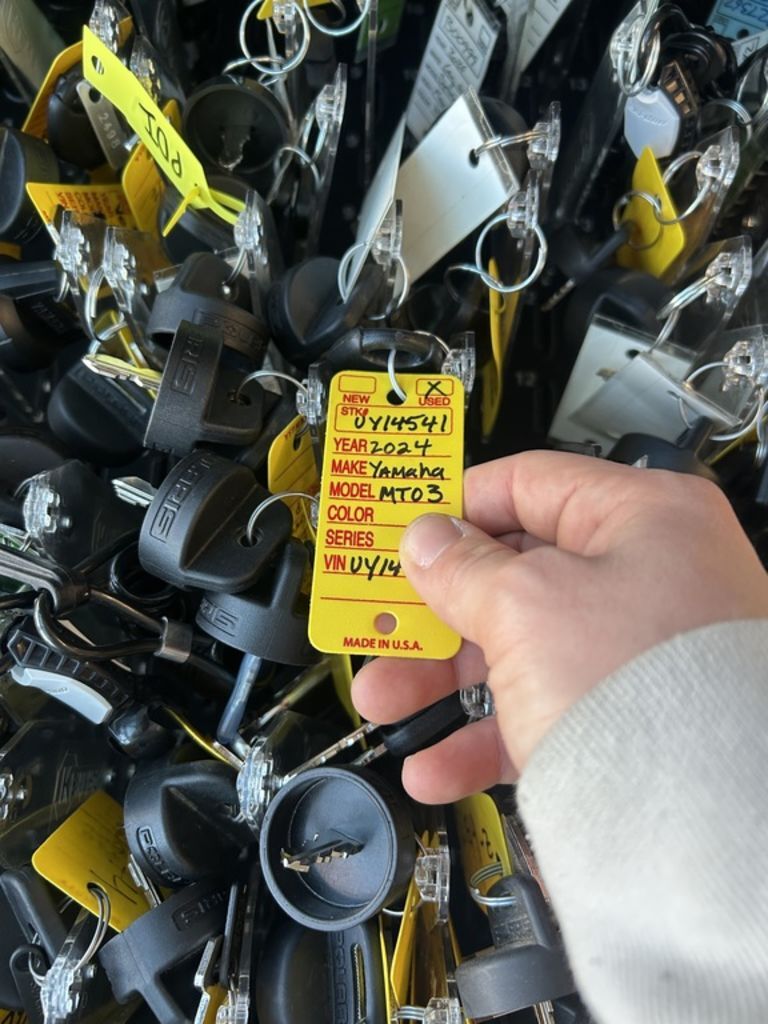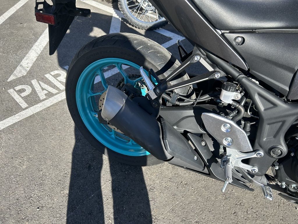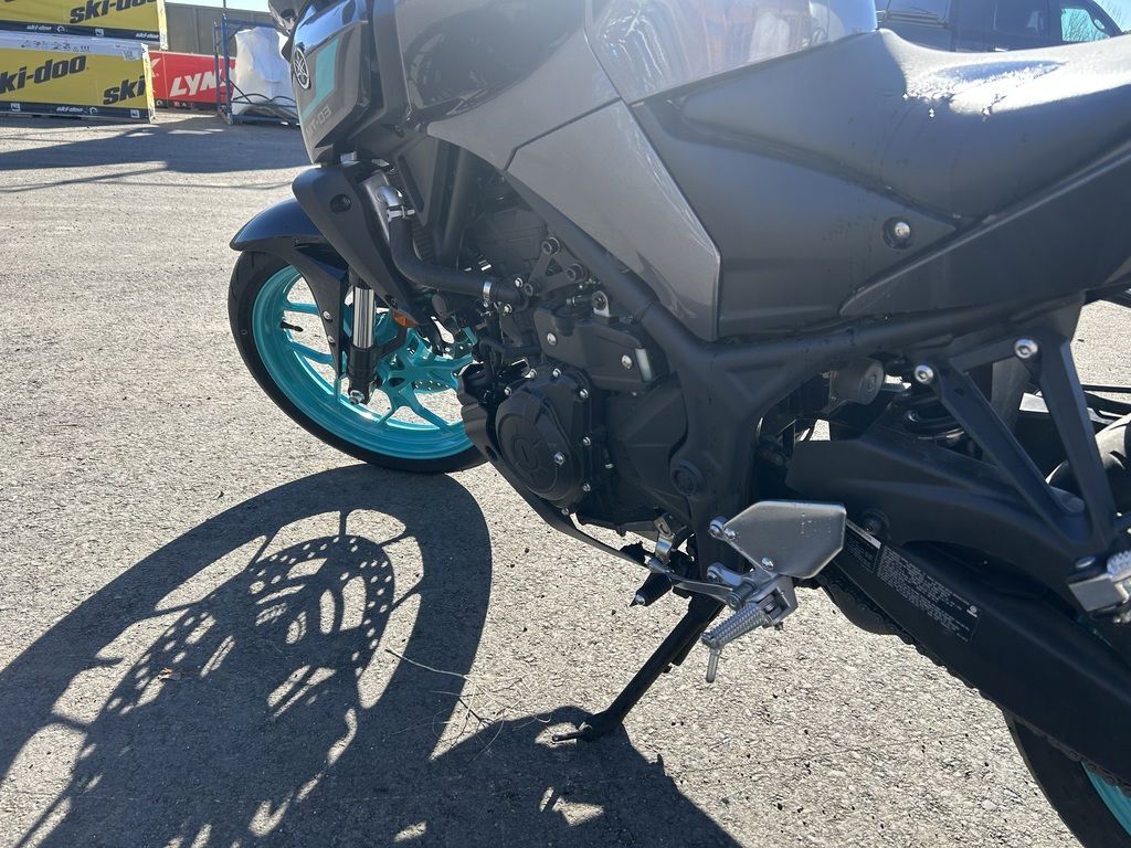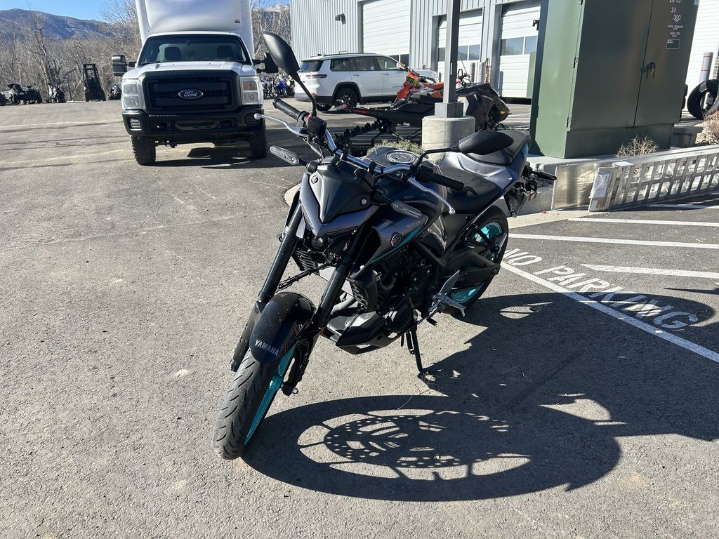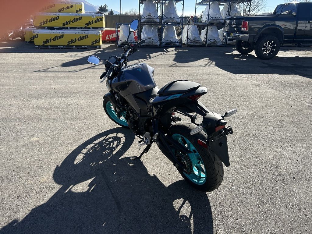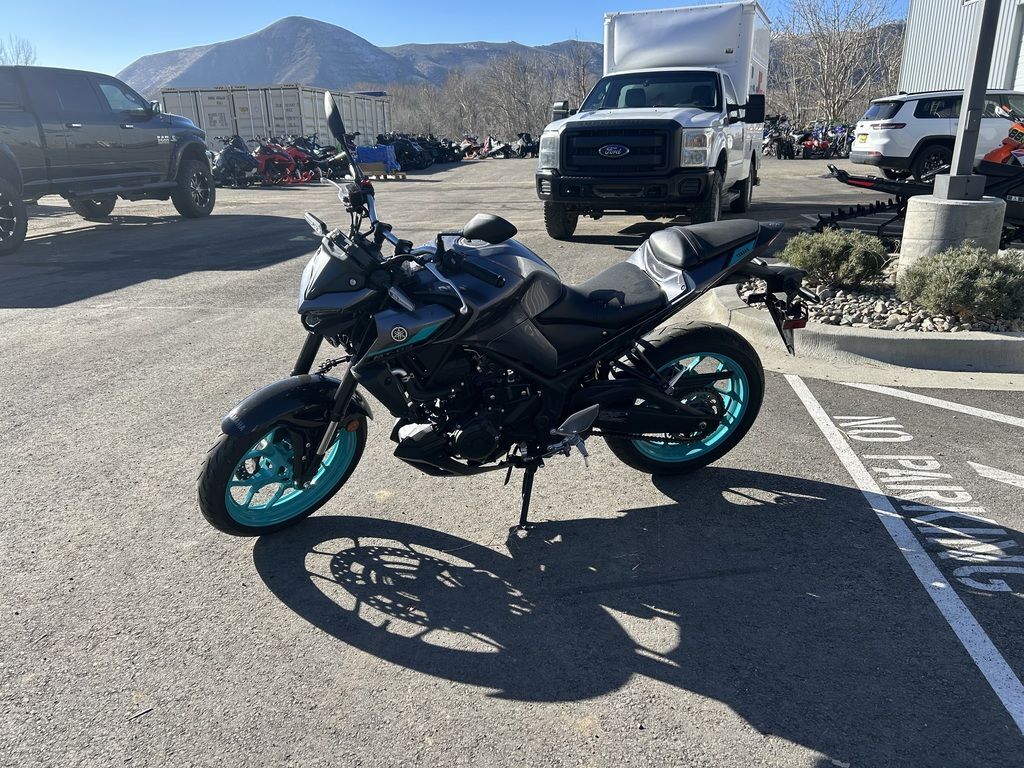 2024 Yamaha MT-03THE DARK BECKONSYour entry to the Dark Side. Built to thrill with a twin-cylinder engine, aggressive looks and serious street presence.Features may include:TOP FEATURESSmooth & Easy To Ride Power DeliveryThis 321cc liquid-cooled two-cylinder engine features lightweight forged pistons and carburized connecting rods, delivering easy to manage power in the low rpm range with strong high rpm power. The extremely light clutch feeling makes the MT-03 even more fun in the city, while its offset cylinders and advanced fuel injection system ensures smooth throttle response.Dual Position Lights with Singular LED HeadlightThe dynamic MT-03 looks cool with its dual angled position lights that emphasize its aggressive big-bike looks. A single compact and powerful LED headlight burns a hole through the darkness to light up the road ahead.ENGINEPotent Twin-Cylinder PowerplantYamaha’s 321cc liquid-cooled, inline two-cylinder engine delivers excellent power and performance throughout the rpm range. With a 180-degree crank design and integrated counterbalancer, the layout minimizes vibrations for a smooth, refined engine character.Smooth & Useable PowerWith double overhead cams (DOHC) and four-valve cylinder heads, the MT-03 engine provides easy-to-manage power at low rpms with strong rpm power—ultimately delivering an exciting ride with a broad spread of power.Six-Speed TransmissionA smooth-shifting six-speed gearbox ensures the rider always has the right ratio, whether riding through tight city streets or on the open highway.CHASSIS/SUSPENSIONInverted KYB® Front ForkThe MT-03 features an inverted KYB® fork with optimized spring and damping settings, delivering more solid handling when compared to motorcycles using conventional front forks.Monocross Rear ShockThe seven-step preload adjustable single-shock design is tuned to strike a balance between ride comfort and sporty performance with capability across a wide range of uses, from urban commuting to extended rides into the twisty canyons.Long SwingarmThe MT-03 is equipped with a 22.6-inch long asymmetrical swingarm that provides a planted ride during braking, cornering and acceleration.ADDITIONAL FEATURESStylish LED Turn SignalsLight-Emitting Diode (LED) elements are used for both the front and rear turn signals. Not only do LEDs offer long life with minimal power draw, they provide brilliant illumination for confidence and visibility, during the day or night. The MT-03’s dynamic appearance is reinforced by the LED signals that perfectly complement the bike’s aggressive looks.Dynamic Mass Forward DesignYamaha’s Hyper Naked bikes are instantly recognizable thanks to their aggressive and powerful design. A sculpted fuel tank cover is designed to fit snugly with the rider while the lightweight air scoops enhance the look and feel of the mass-forward body design and highlight the dynamic MT family look.Ergonomic Riding PositionWith its compact body and low 30.7-inch seat height, the MT-03 is a joy to ride whether you’re escaping traffic or having a blast out on the open road. Behind the aggressive bodywork, a specially sculpted knee area and fuel tank cover work with the high-mounted handlebars to provide an agile and ergonomic riding position.Digital LCD InstrumentationTo match the MT-03 Hyper Naked’s radical looks, Yamaha has fitted a stylish LCD meter that provides easy-to-absorb information.