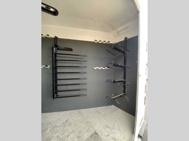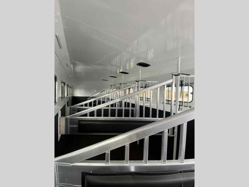 Our Sierra is loaded with features, first the standard features, then, the features we added! This is an 8ft wide, 7'6" Tall gooseneck slant load horse trailer.
