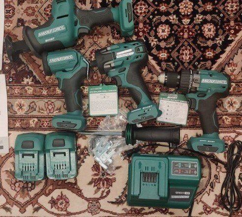 PayPalThis is a four piece set of battery powered tools. The saw might have been used once but all others are unused. A drill, an impact wrench, a reciprocating saw and a light. Two batteries and a charger.