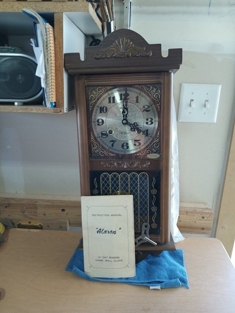 Great Gift .Alaron Wall Clock with Chime. with Pendulum and Key. Great Condition. keeps Good Time. Asking $40.00. O.B.O. Text Mark @ 801-645-2169