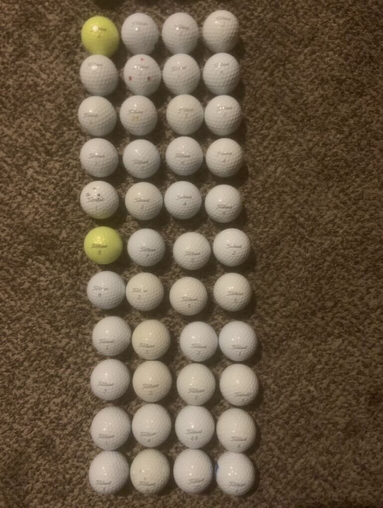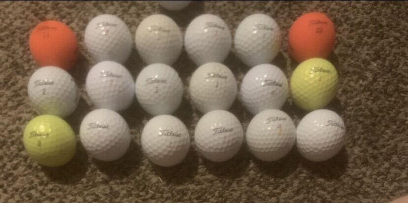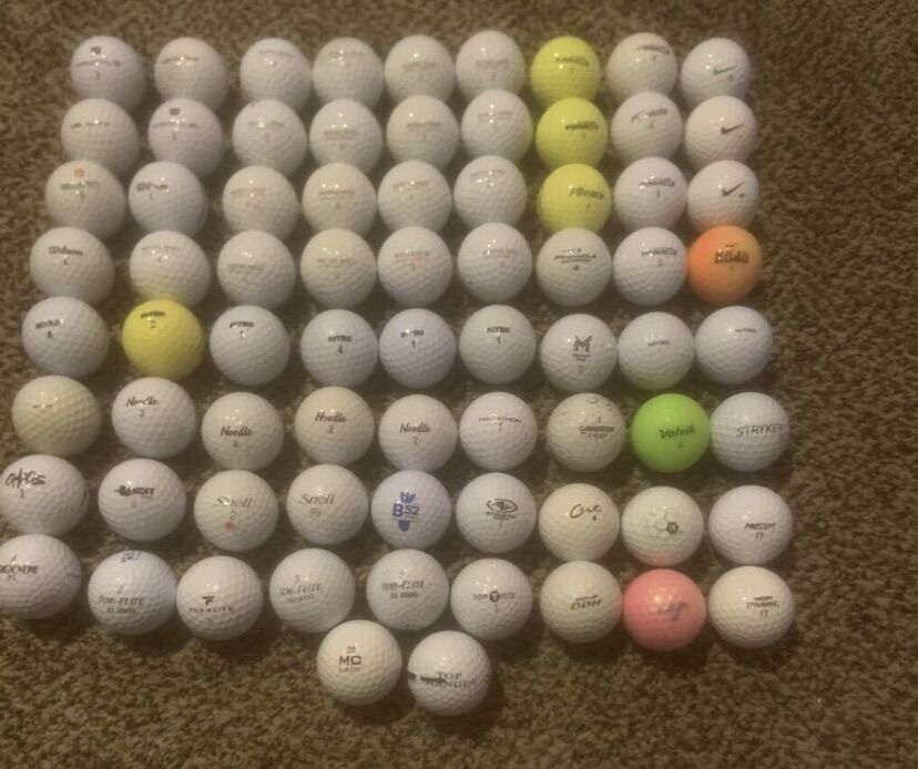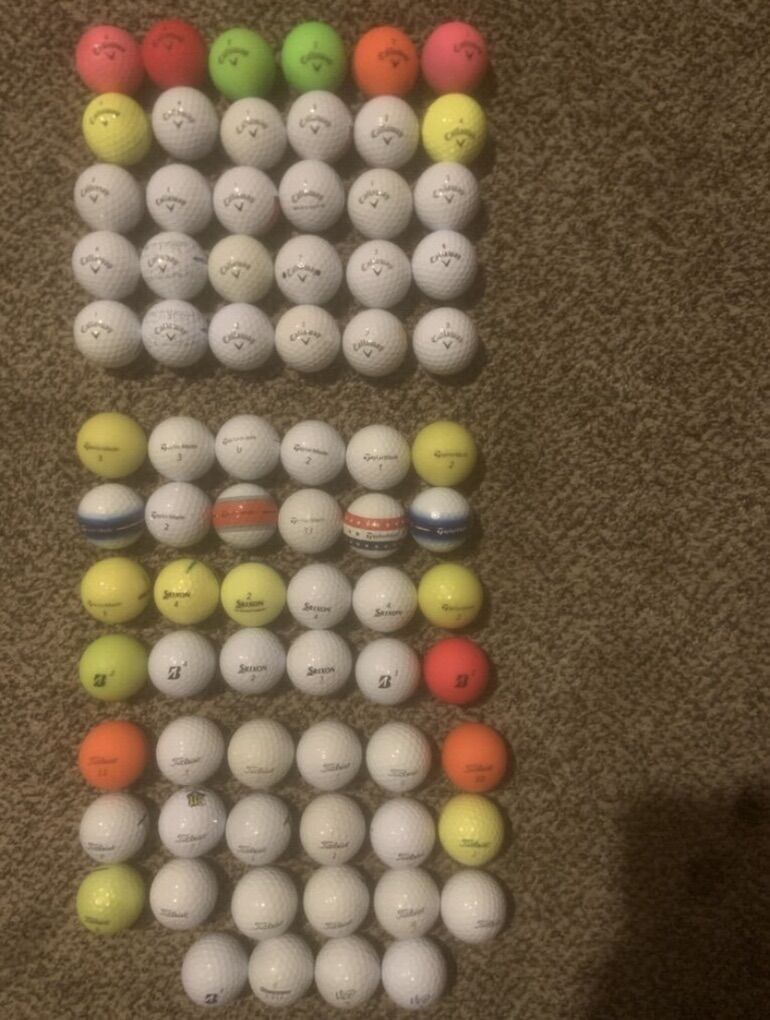 150 3A golf balls 30 Callaway 14 Taylor Made 18 Titleist 6 Srixon 6 Bridgestone 2 Vice 17 Kirkland Signature 8 Wilson 9 Nitro 5 Noodle 3 Nike 9Pinnacle 6 Top Flite 3 Precept 14 other balls