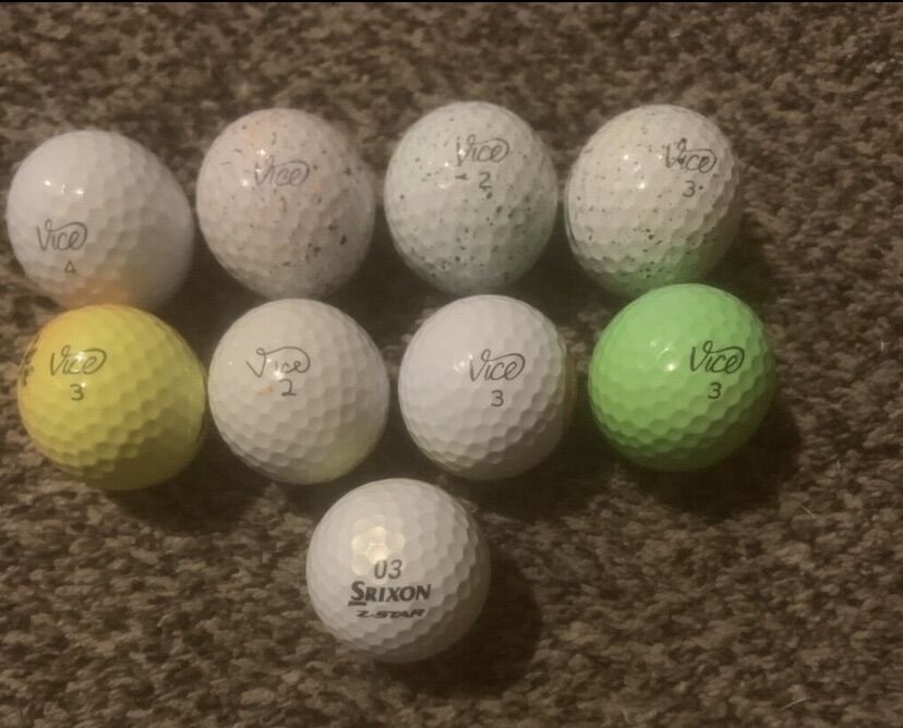 82 4a grade golf balls 8 Callaway chrome soft 9 Taylor Made TP5x 5 Taylor Made TP5 18 Titleist Pro V1x 26 Titleist Pro V1 2 Titleist AVX 2 Bridgestone Tour BX 1 Bridgestone Tour B XS 1 Bridgestone Tour B RXS 1 Bridgestone Tour B RX 1 Srixon Z Star 2 Vice Pro 6 Vice Pro plus