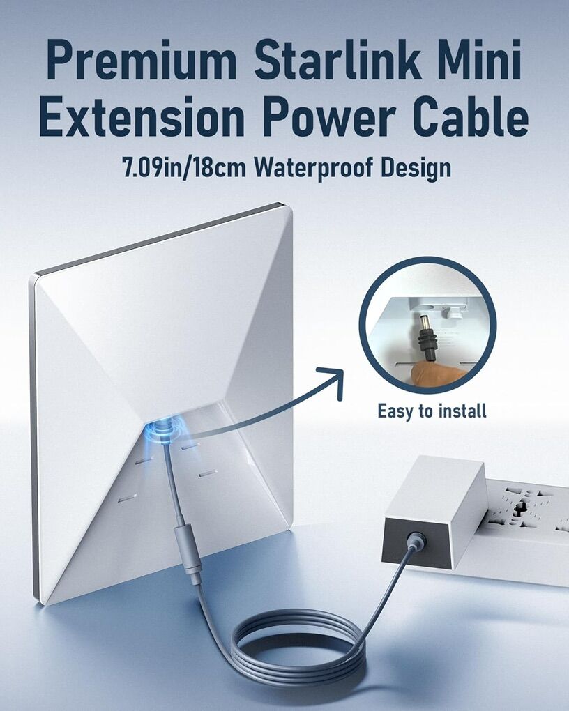 Designed for Starlink Mini is very ideal with mounts. This extension cable eliminates the need for frequent bracket removal, reducing wear and tear. It’s lightweight and compact design makes installation and storage easy, ideal for both home and travel use so that you don’t have to remove the amount just to detach the cable. It allows you to attach and detach the power cable without requiring the amount to be removed.