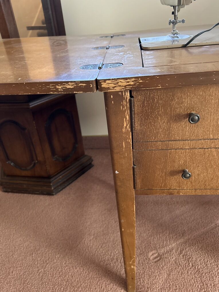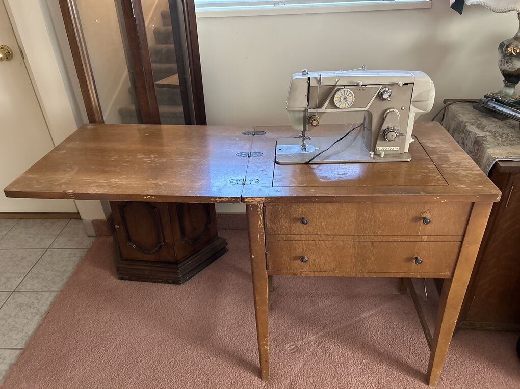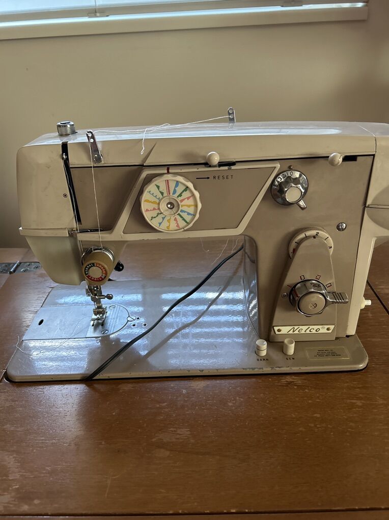 VenmoNELCO sewing machine. It is set into this wonderful table, so it can be stored away when not in use it was serviced by Swiss Boy a few years ago, but has not been in use since this was once used in a shop that did alterations and has been going solid for many years