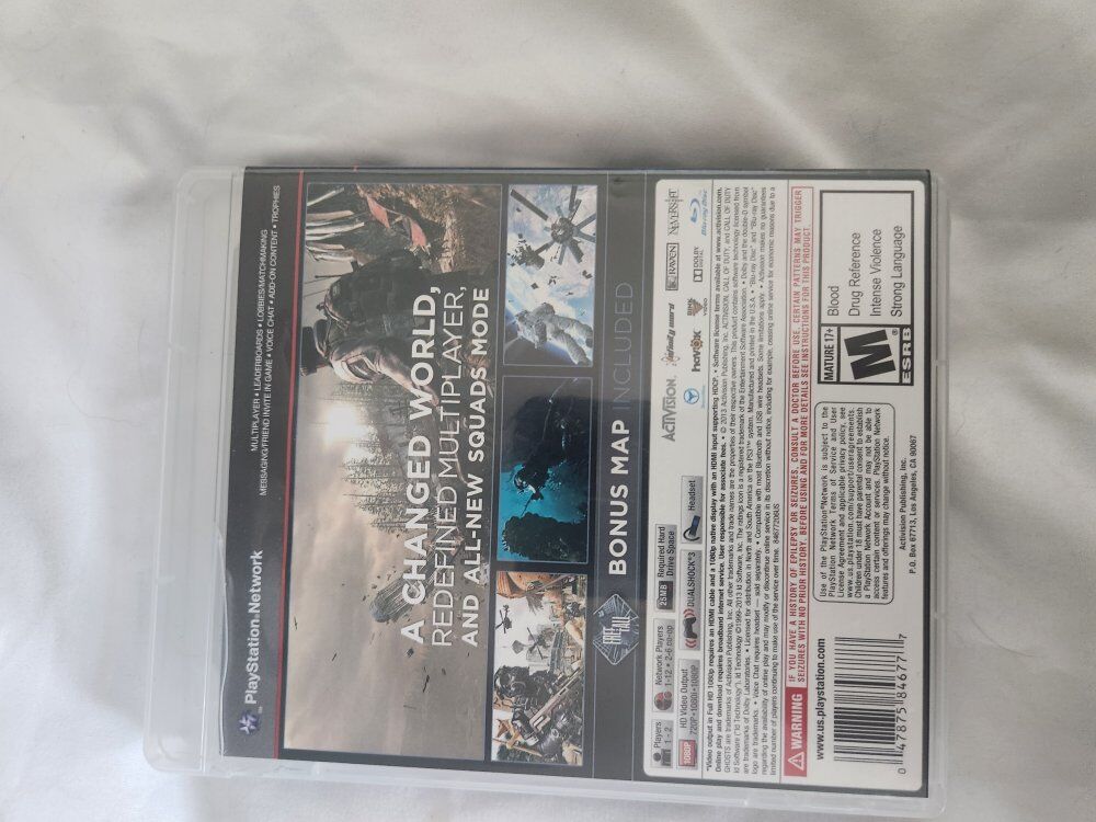 Call of Duty: Ghosts for the PlayStation 3. Platform: PlayStation 3 (PS3). Game Title: Call of Duty: Ghosts. ESRB Rating: Mature 17+ (M). Online Interactions: Not rated by the ESRB.