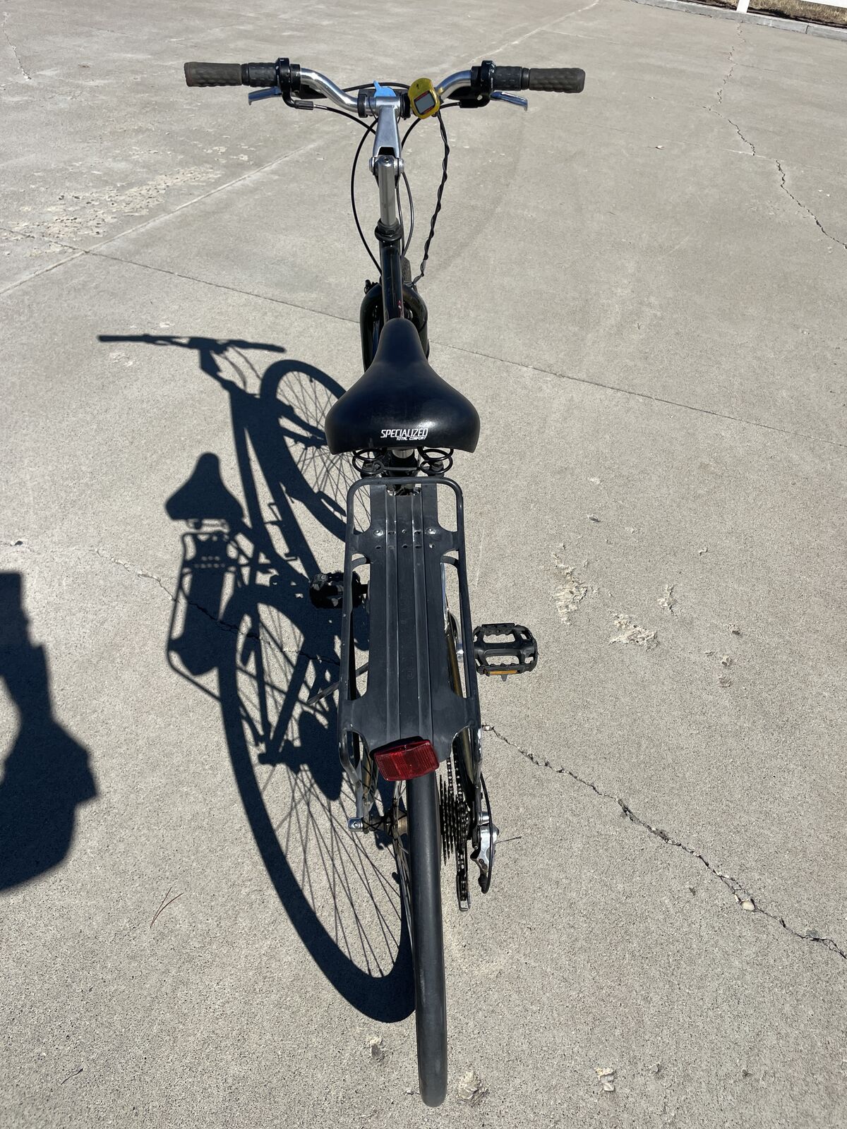Globe Specialized 15"- Hybird 21-speed Shimano gearing system bicycle, providing good flexibility for different terrains and riding conditions. The Hybrid style is designed for both street and light trail use, blending comfort and efficiency. It has a aluminum frame construction for durability and lighter weight. One owner, paid over $400 new.