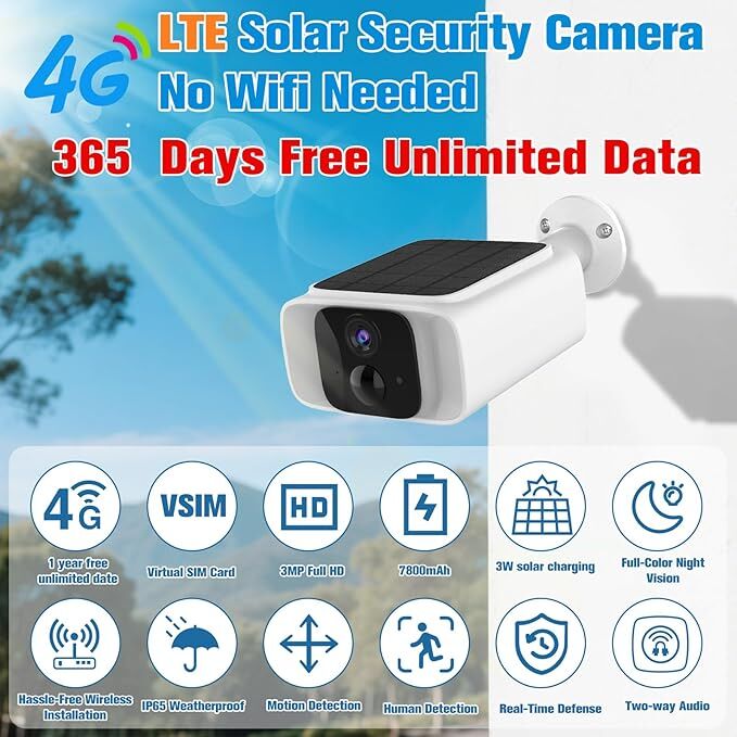 VenmoI am selling a NEW 4G LTE Cellular Solar 2K Security Cam. It includes one year of unlimited data and auto connects to the strongest available cellular network between AT&T, T-Mobile, and Verizon.