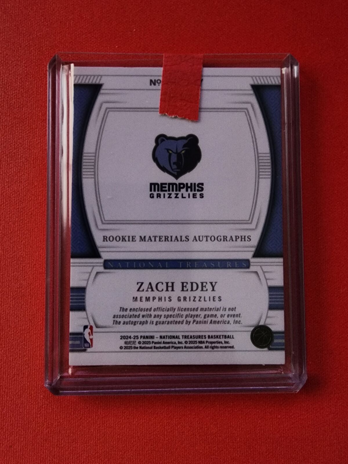 2024 Panini National Treasures Zach Edey Rookie Materials Autograph on card quad patch. 97 of 99. Cash only. No trades. Pickup only.