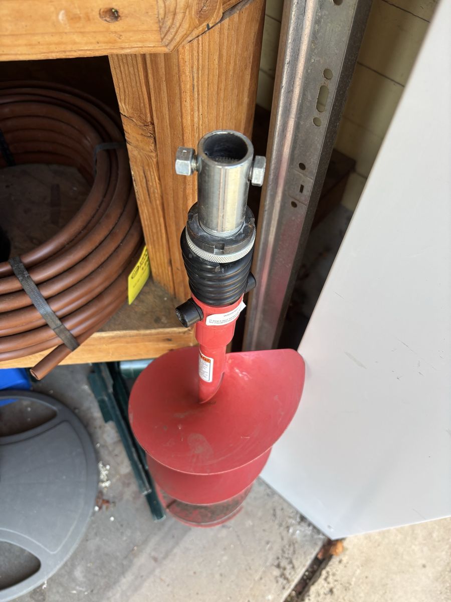 Venmo12 Inch Diameter 36 Inch Long Earth Auger Bit with Fishtail Point and Patent Shock Spring. Minimally used. Excellent condition.