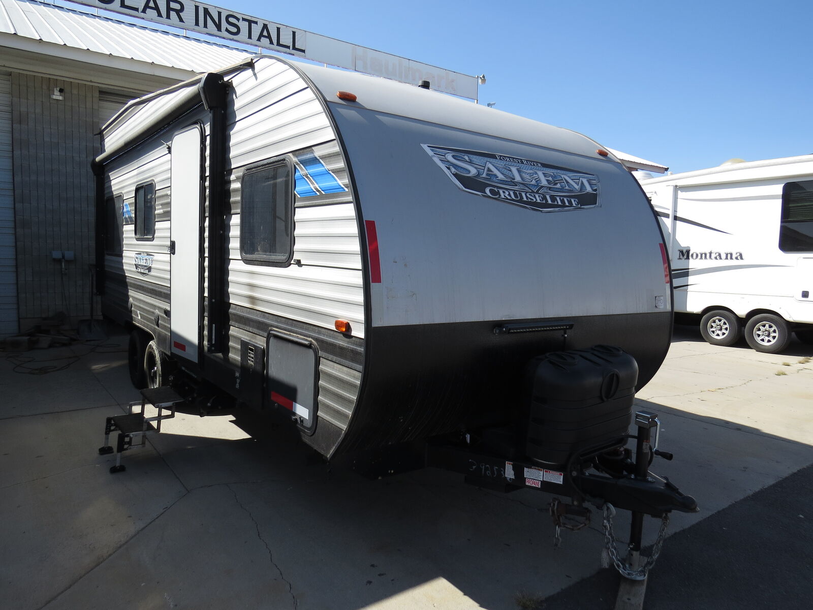 13' Garage Space!, Queen bed, Electric rear Bed, Both Couch Make down to beds, bathroom, Kitchen, Electric patio awning, A/C unit and Heat. Location: 50 S Frontage Rd, Springville Dealer#832B Quality RV -Financing Available-