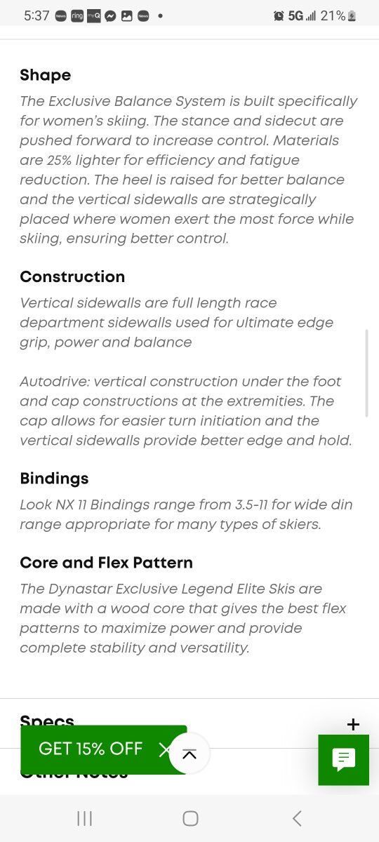 Online info Dynastar Exclusive Legend Elite Skis + NX 11 Bindings - Women's, Not just for any skier, the Dynastar Exclusive Legend Elite Ski +NX 11 Bindings are made exclusively for advanced female skiers looking to showcase their skill on the mountain. The Dynastar Exclusive Legend Elite Skis feature the Exclusive Balance System designed just for women’s stance and body weight posturing, for better control and edge grip. Ladies, you will love the smooth ride and speed that you’ll get with the Dynastar Exclusive Legend Elite Skis + NX 11 Bindings.