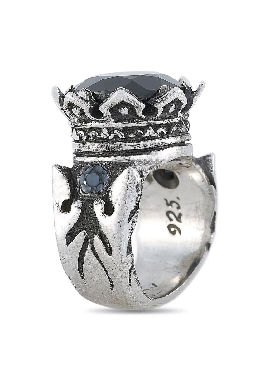 King Baby Black Cubic Zirconia Crown Ring in Sterling Silver, Beautiful! Excellent Condition! inf 702 3558824