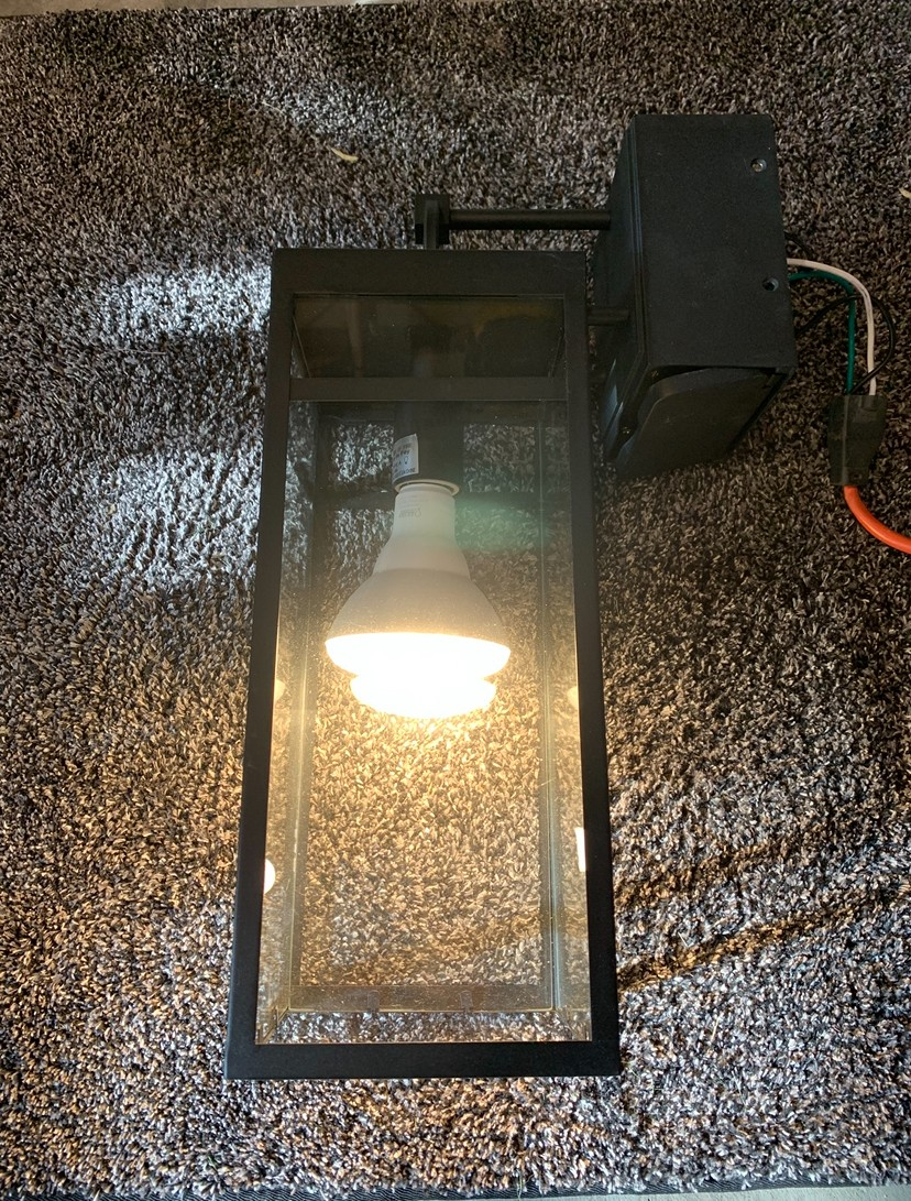VenmoOutdoor Light Wall Sconce Built in GFCI Outlet Built-in Daylight Sensor Control Light Paint Damage as Shown in Photos, Mounting Plate Missing.