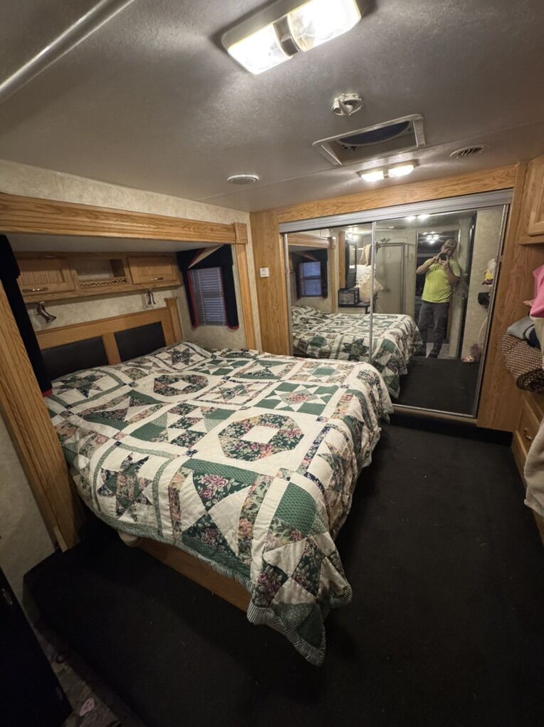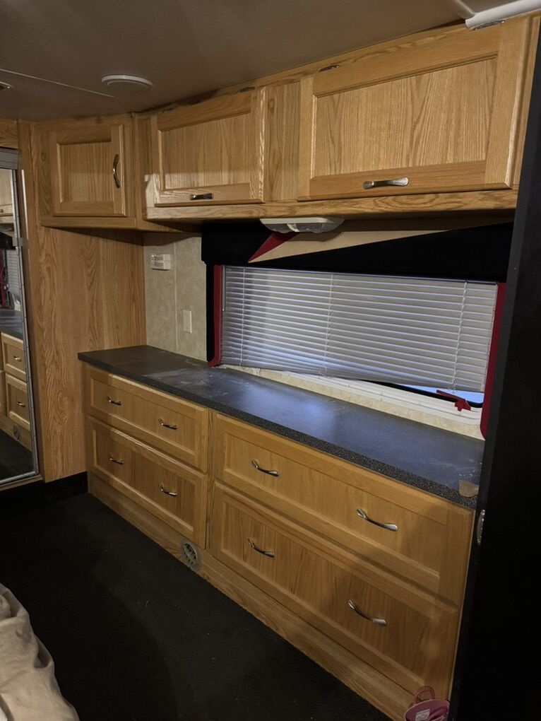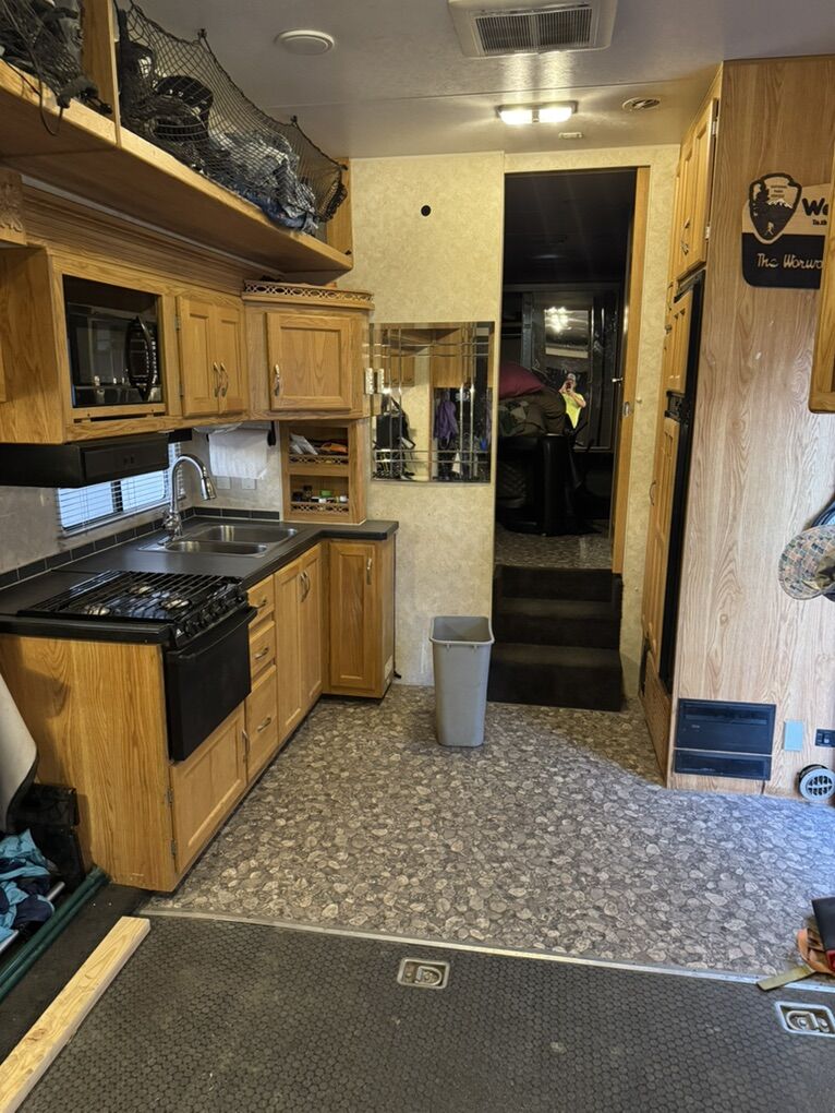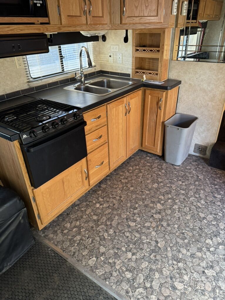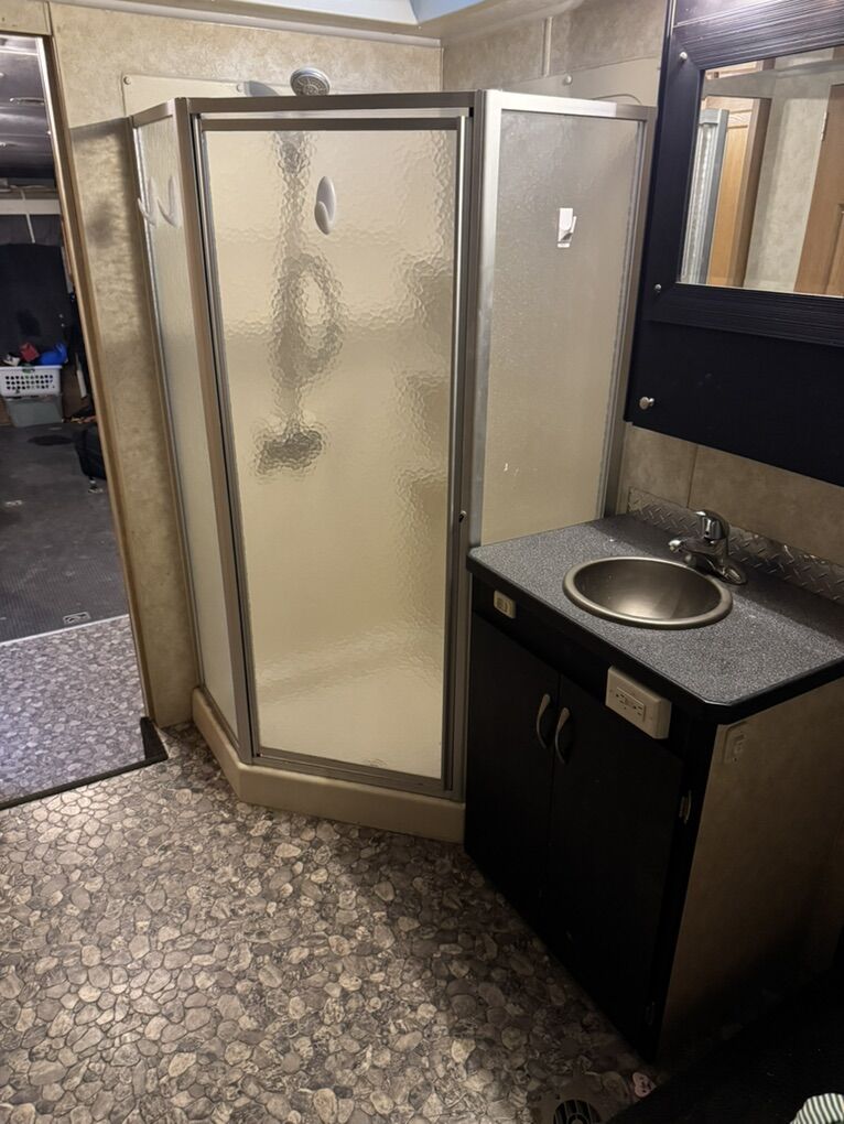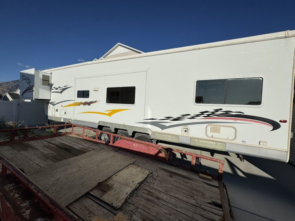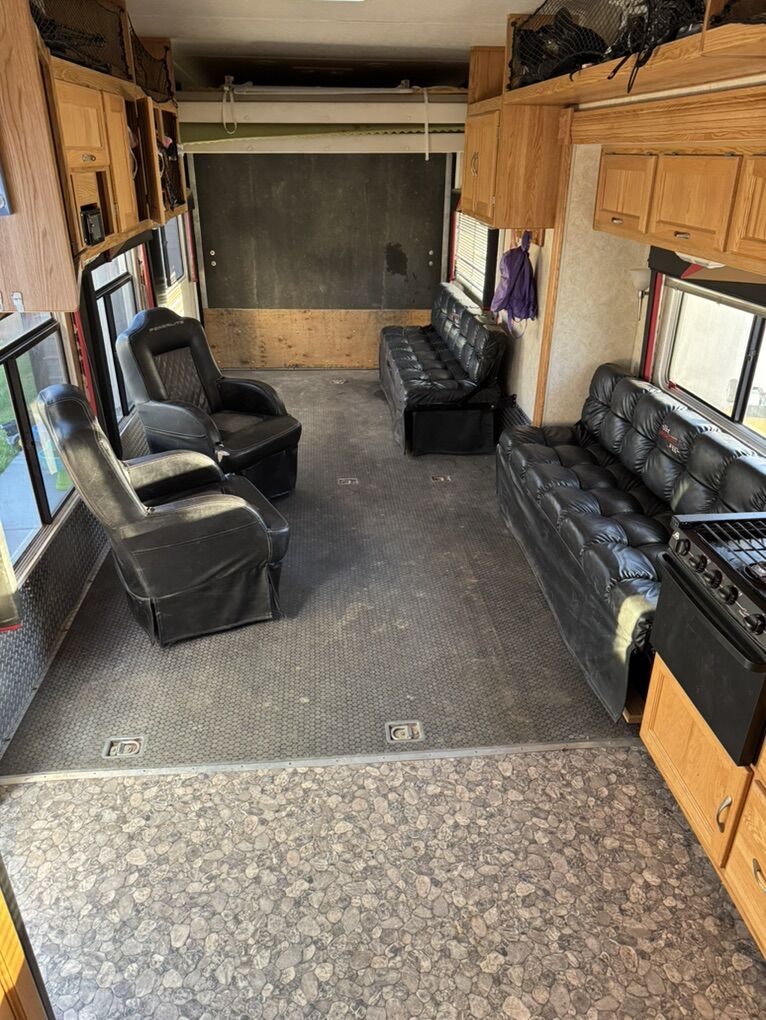 40’ open floor plan fifth wheel toy hauler. Has 17’ 8” of cargo space plus another 2’-3’ into the kitchen. It is 70” wide at its narrowest with the slide pulled in. I put a 4 seat razr 1000 turbo xp plus 4 dirtbikes in it no problem. Everything works great and as it should. No leaks of any kind. 100 gallon fresh water, 50 gallon each holding tank. Onan 5500 generator with 15 gallon tank plus a separate 30 gallon tank for the fuel station with pump. 2 drop down queen beds in back, two couches and two chairs. Tons of open space while camping. Bedroom slide out as well as couch/kitchen slide in main area. Only selling because we bought a new one. Has been a great trailer with zero issues for us.