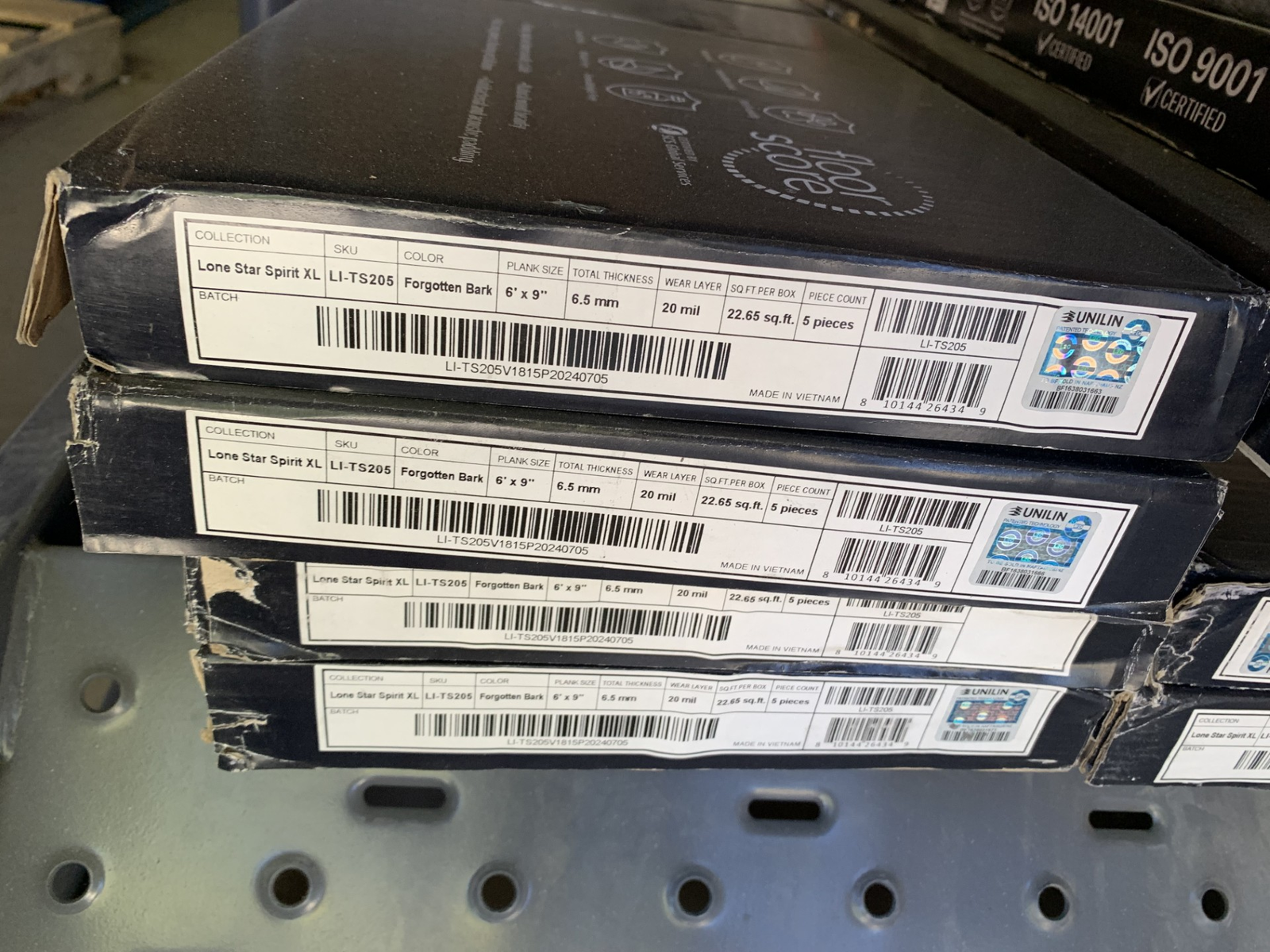Some boxes have external damage and material may be effected inside, a couple boxes have a broken or missing piece of material. 9 boxes of ~5 boards total ~200 Sq.Ft.