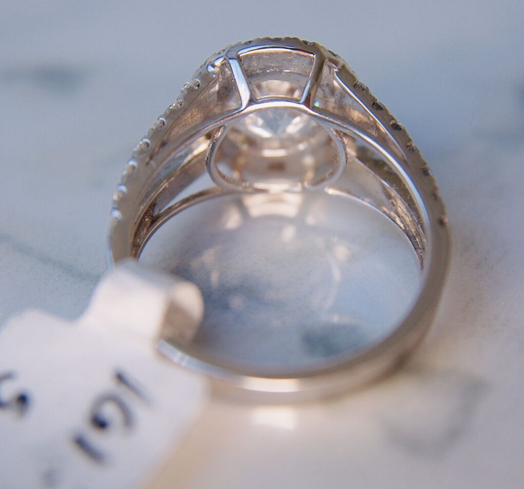 Center Stone: 2.02CT Round Brilliant Color: E (Colorless) Clarity: VS1 (Very Slightly Included) Certification: IGI #710555717 Accent Diamonds: 0.73CT Round Brilliant (Halo + Band) 🪙 Total Carat Weight: Approx. 2.75CTW 🤍 Metal: Solid 14K White Gold Ring Size: 6.5 – Free resizing included (1-year)