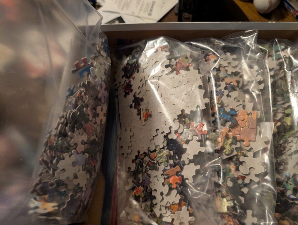 PayPalThis product is a Thomas Kinkade Disney 4-piece puzzle set featuring 500 pieces made of cardboard. The puzzles sets includes multiple colors and depicts characters from the Disney family. Manufactured in the United States, this puzzle is perfect for fans of Disney and contemporary puzzles. Each puzzle comes in a plastic bag for easy storage and organization while working on the puzzle. 20 dollars or best offer. Will ship world wide.