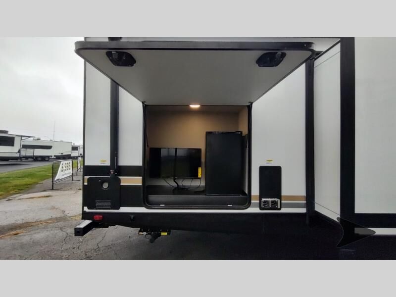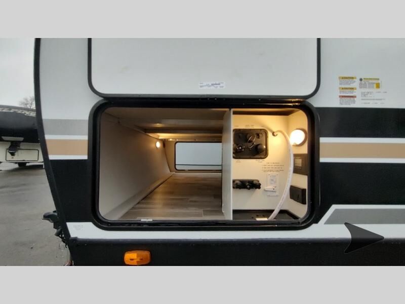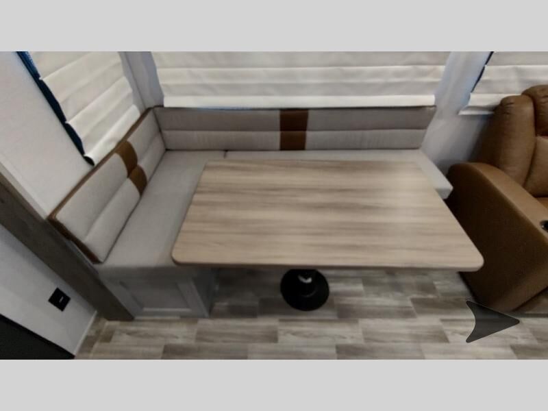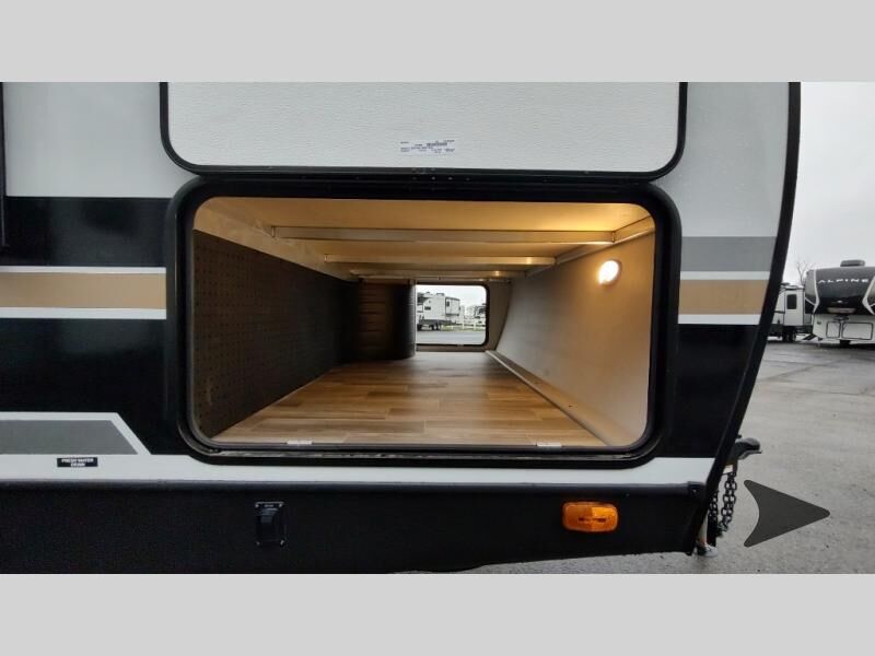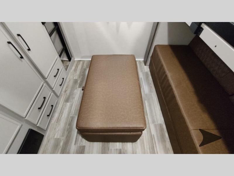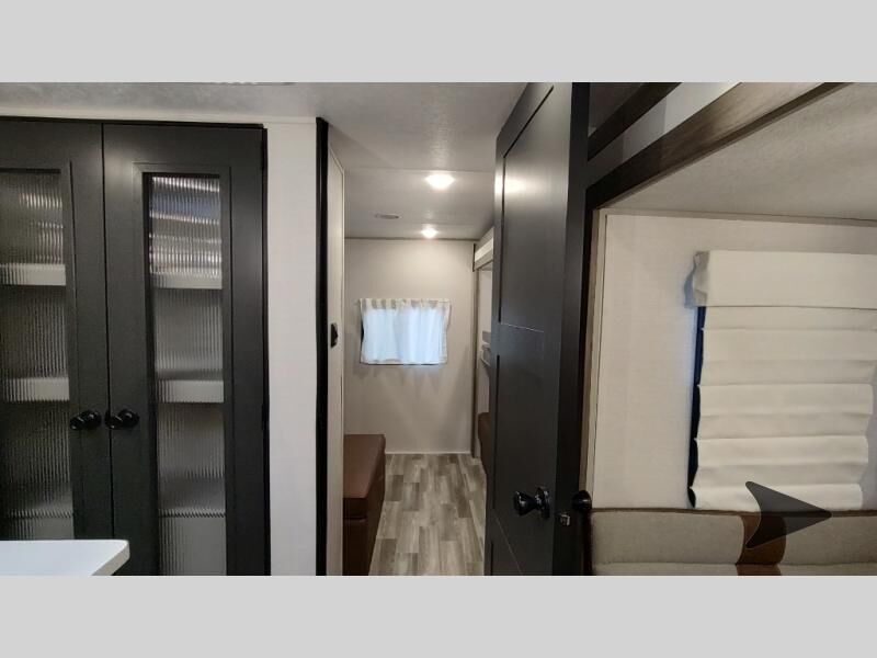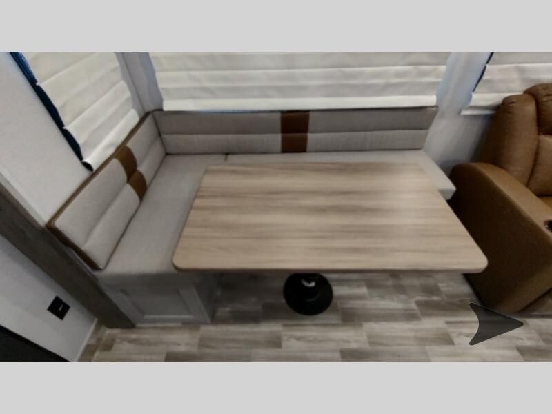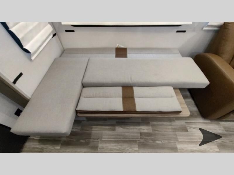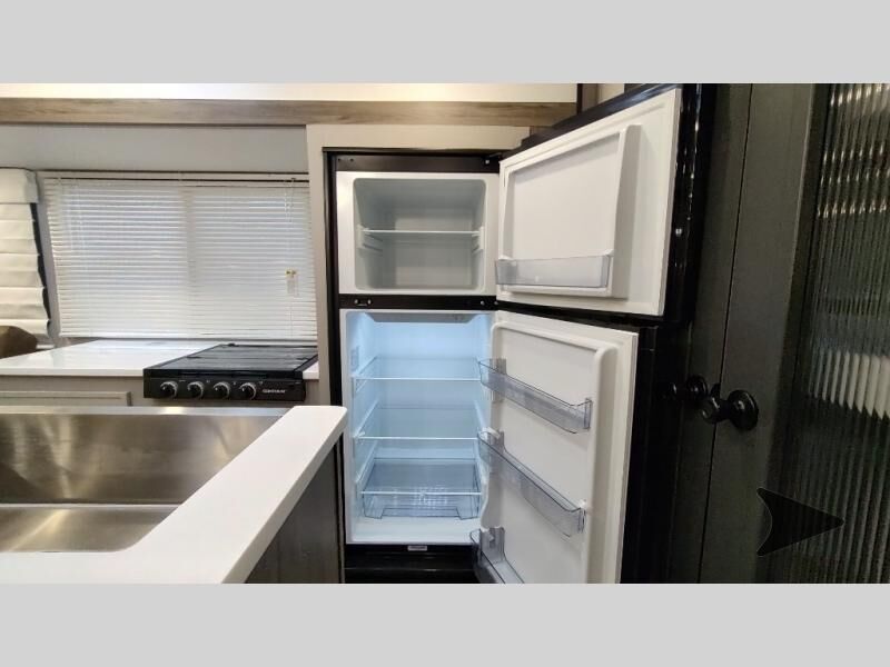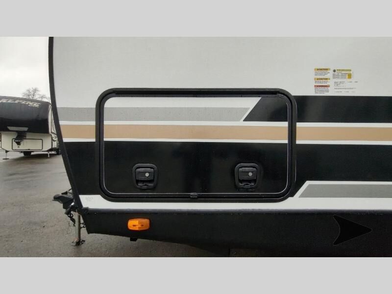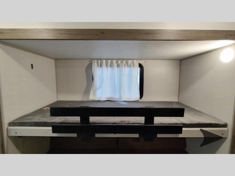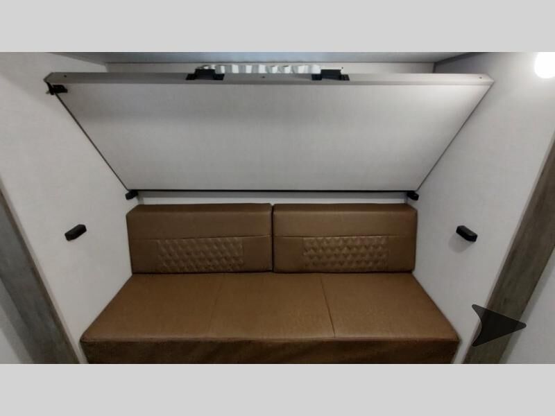 Forest River Vibe travel trailer 3400BHhighlights: Oversized Panoramic Windows Kitchen Skylight Tri-Fold Sofa Spacious Full Bath Front Private Bedroom 5-Person Dinette Whether you enjoy spending time outdoors or indoors, there is something for everyone in this travel trailer. The large pass-through storage can store your fishing poles, and the 20' electric awning with LED lights will create an outdoor living space. There is even an outdoor refrigerator with an outside storage cabinet and 32" TV! You will love all the interior space thanks to the dual opposing slides in the main living area, which will give the chef space to work around the kitchen island. Your crew can visit on the tri-fold sofa, theater seating and 5-person dinette while the fireplace is going, but you'll probably find the kids spending most of their time in the private bunkhouse! What more could you want in a travel trailer?! With any Vibe travel trailer by Forest River, you will enjoy comfort at every turn! There is a Norco huck-bolted steel frame, an enclosed underbelly with 12V heating pads, and a PVC roof membrane for added durability. You will also find a universal docking station outside, along with slam latch doors, European style square windows, and an automotive painted front cap. Head inside to enjoy the premium residential-style furniture, decorative window treatments, privacy shades in the living room and bedroom, and many more comforts!