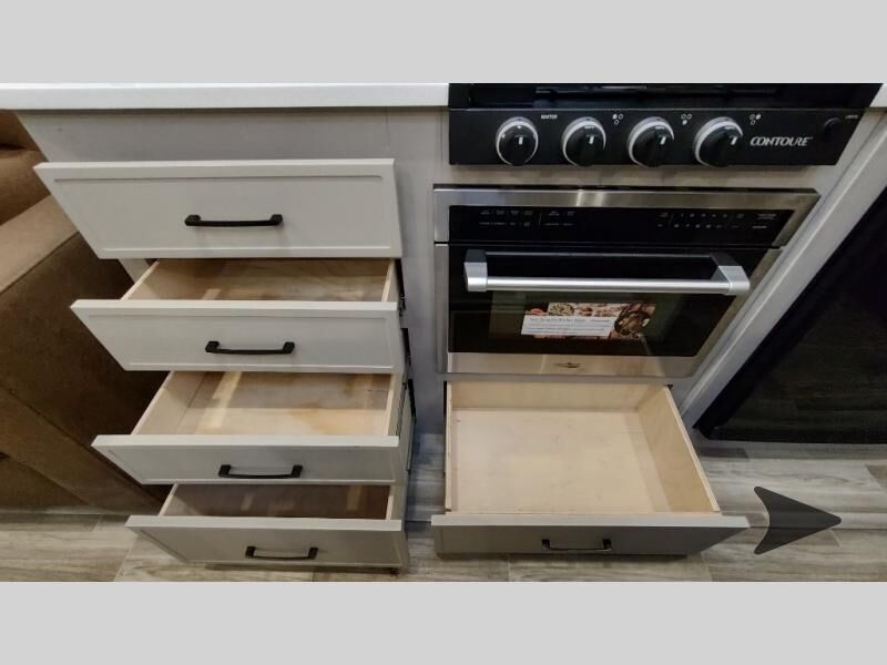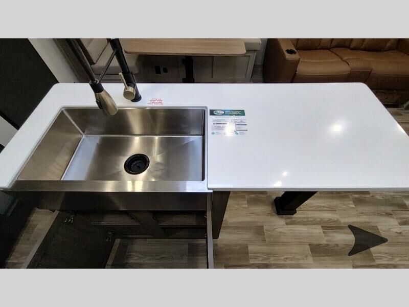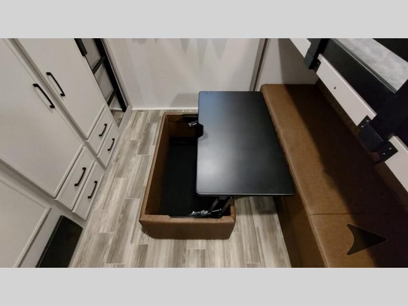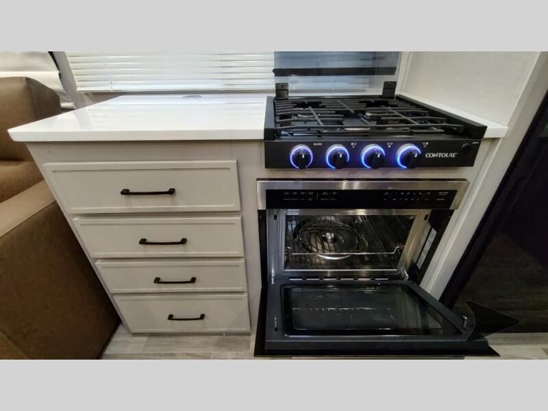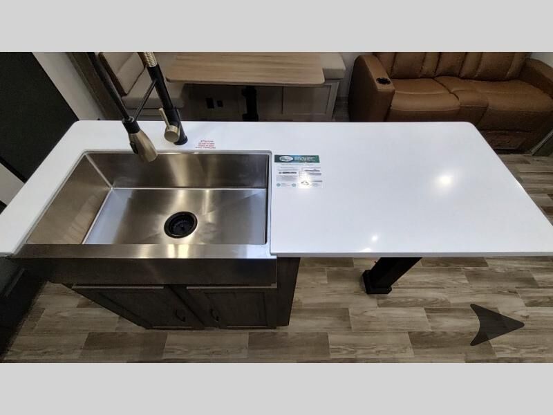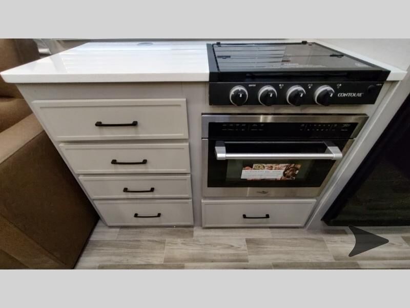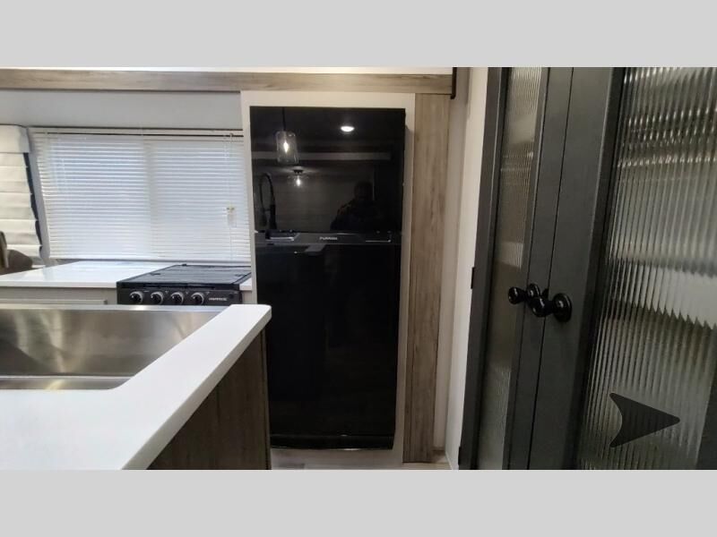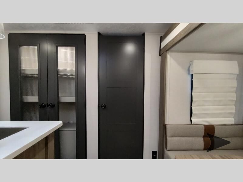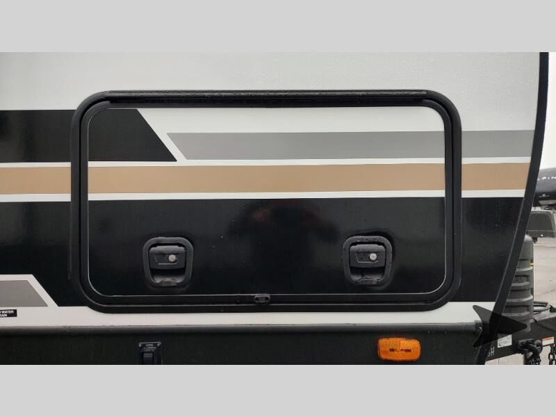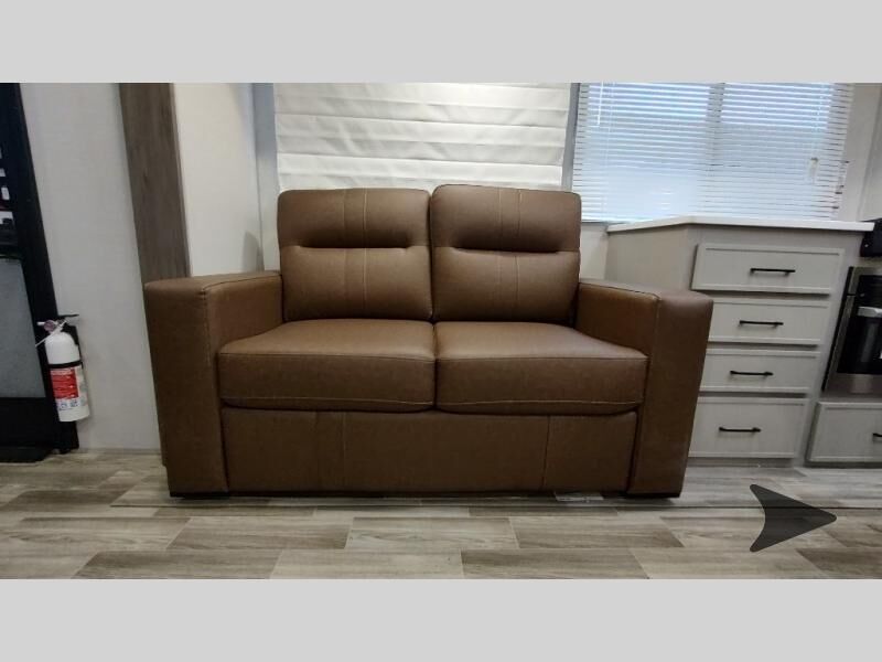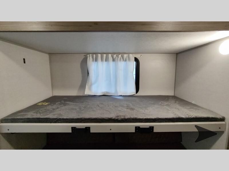 Forest River Vibe travel trailer 3400BHhighlights: Oversized Panoramic Windows Kitchen Skylight Tri-Fold Sofa Spacious Full Bath Front Private Bedroom 5-Person Dinette Whether you enjoy spending time outdoors or indoors, there is something for everyone in this travel trailer. The large pass-through storage can store your fishing poles, and the 20' electric awning with LED lights will create an outdoor living space. There is even an outdoor refrigerator with an outside storage cabinet and 32" TV! You will love all the interior space thanks to the dual opposing slides in the main living area, which will give the chef space to work around the kitchen island. Your crew can visit on the tri-fold sofa, theater seating and 5-person dinette while the fireplace is going, but you'll probably find the kids spending most of their time in the private bunkhouse! What more could you want in a travel trailer?! With any Vibe travel trailer by Forest River, you will enjoy comfort at every turn! There is a Norco huck-bolted steel frame, an enclosed underbelly with 12V heating pads, and a PVC roof membrane for added durability. You will also find a universal docking station outside, along with slam latch doors, European style square windows, and an automotive painted front cap. Head inside to enjoy the premium residential-style furniture, decorative window treatments, privacy shades in the living room and bedroom, and many more comforts!