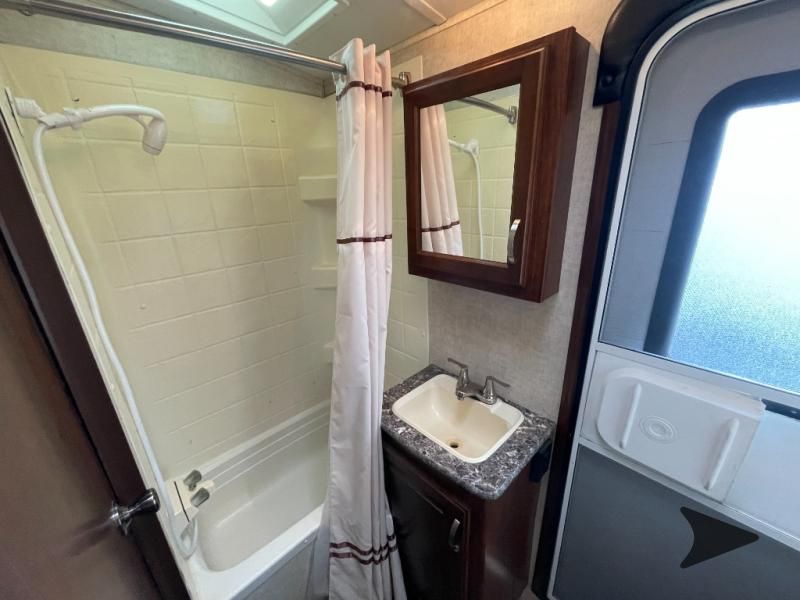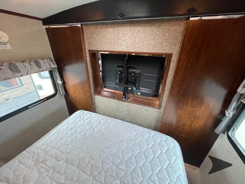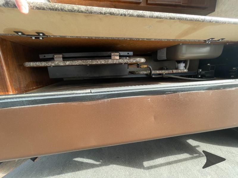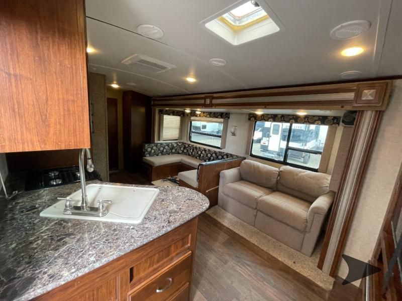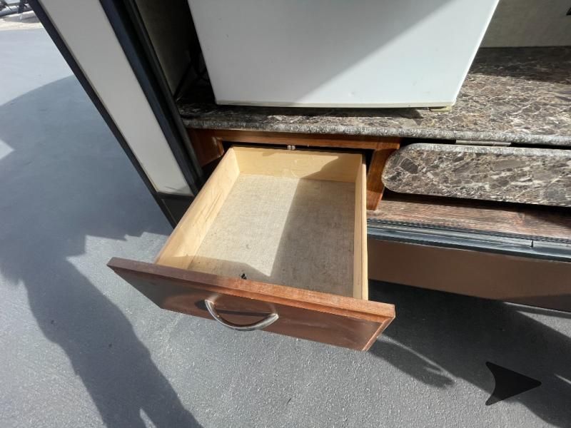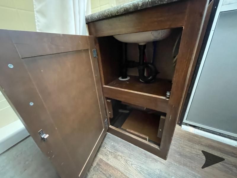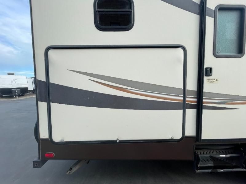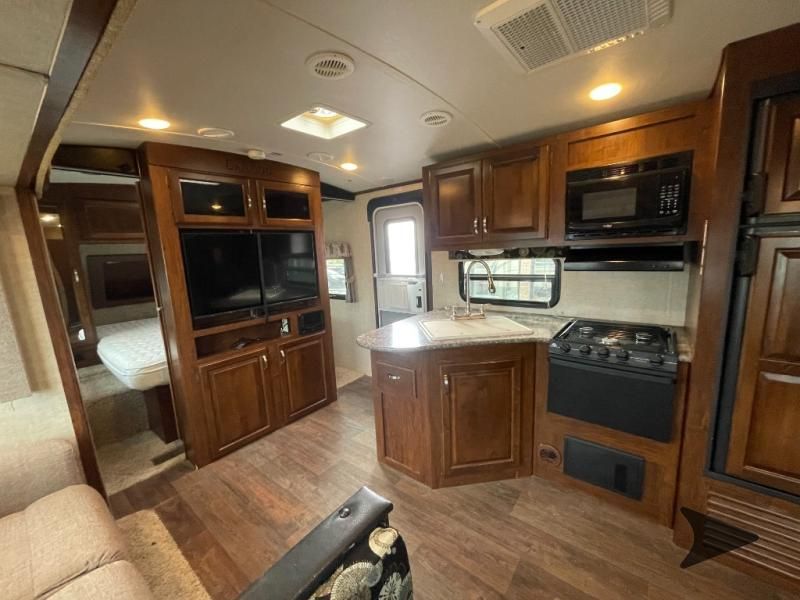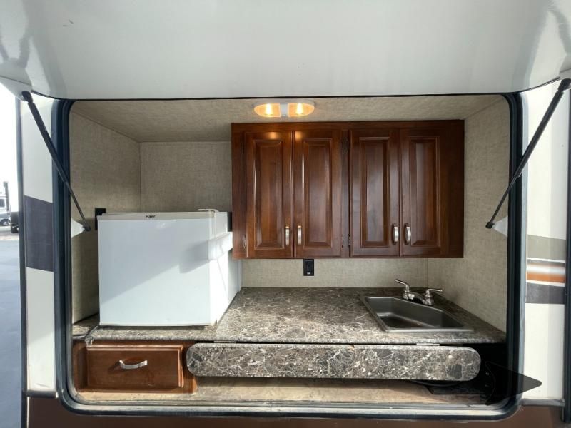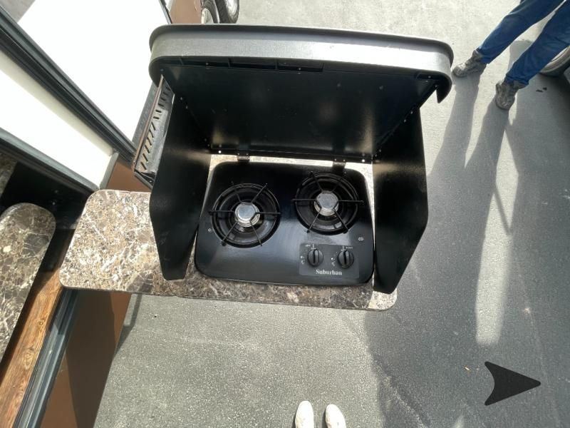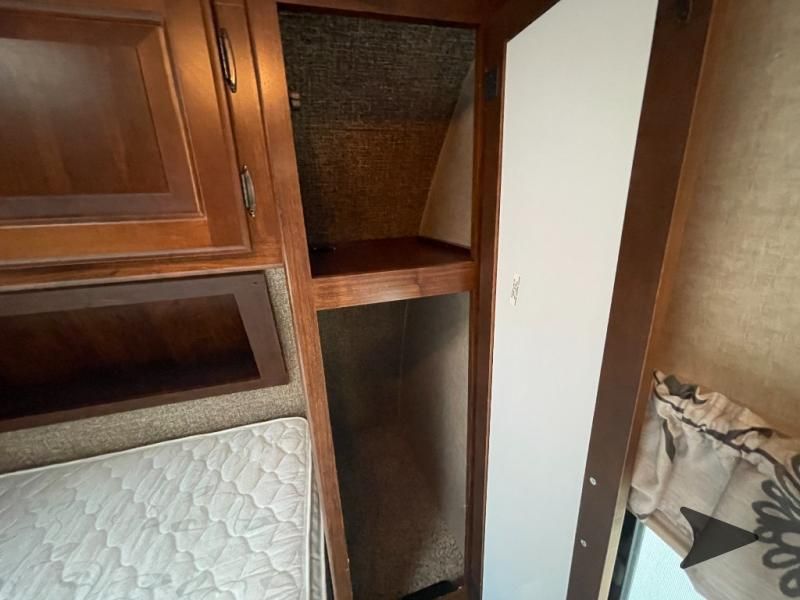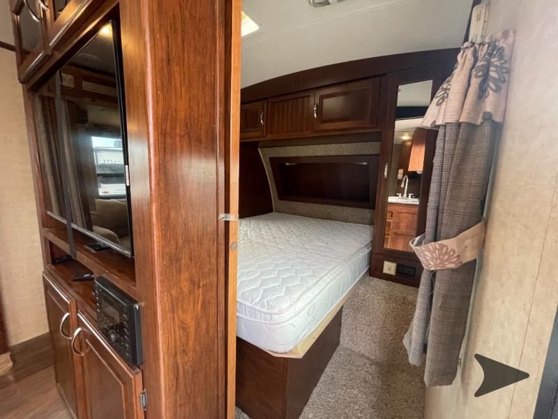 This Keystone Laredo travel trailer 303TG is very similar to model 291TG. The main difference is in the bunkhouse with the added slide, the bathroom features a private entry door, and it is about 2'5" longer in length.Step inside and notice the front bedroom with queen size bed. There are bedside wardrobes on both sides and overhead cabinets for storage. There are dual sliding doors on either side of an entertainment center that can be closed for more privacy at night in the bedroom.In the main living space you will love the added foot traffic space that is added with the large u-shaped dinette and tri-fold sofa sleeper slide. They provide plenty of space to dine comfortably, enjoy watching TV, or just hanging out, and they both can be made into more sleeping space if needed at night.The kitchen features all the amenities needed to prepare and feed your hungry crew. There is a refrigerator, three burner range, and double kitchen sink, plus storage above for dishes and things. You will also find drawer space and cabinets below the counter. There is a pantry off the u-shaped dinette for dry goods and more.The bunkhouse features a set of 28" x 74" bunks on the right and a third 38" x 74" bunk on the left above storage below. There is also a wardrobe in between the two, and an exterior kitchen is located beneath the third bunk also. Step outside and see how convenient the outdoor kitchen is with a flip-out two burner stove, refrigerator, single sink, exterior counter-top, and grill. There is also a front pass-through storage compartment for all of your outdoor camping gear, and so much more!