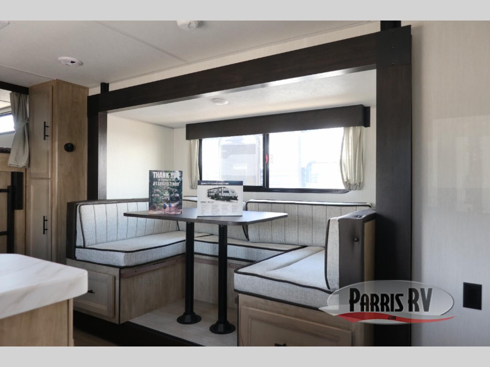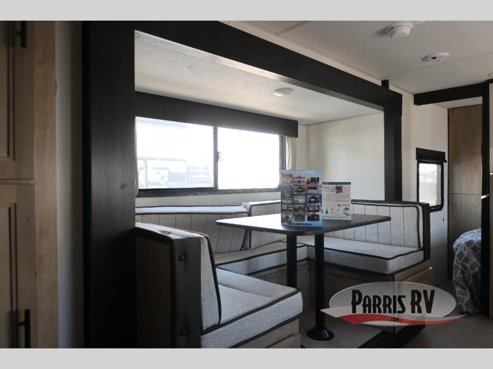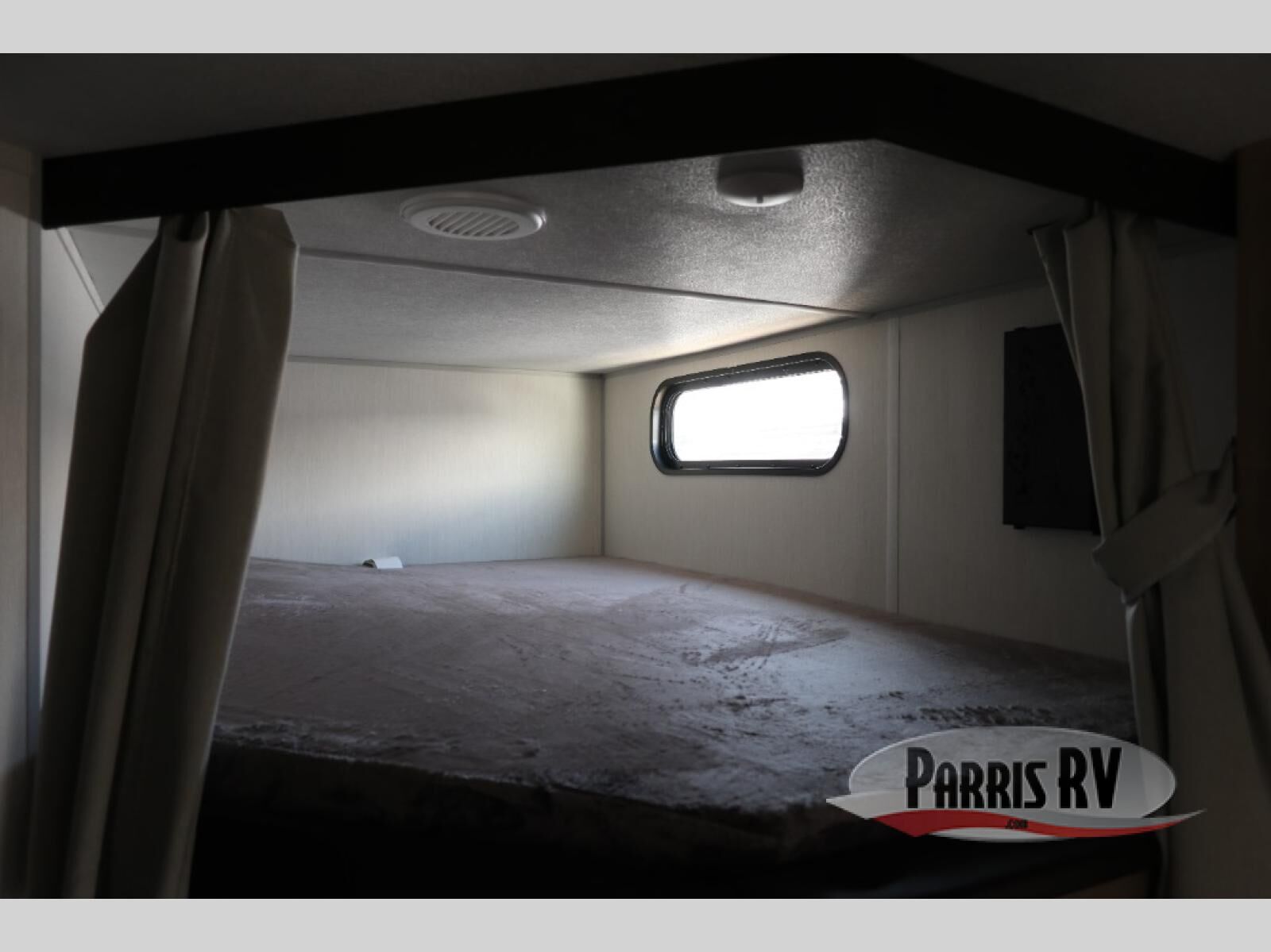 You will love the space provided in this dual entry Cherokee Grey Wolf travel trailer that has double-size bunks! The rear entry door leads right into the full bath allowing easy access from outside when you need to use the bathroom while you're enjoying the great outdoors. The large U-shaped dinette slide will not only seat everyone comfortably for a meal or a game, but since it also slides out, it opens up the interior even more to give you plenty of space for foot traffic. For all of your outdoor gear, you will find the outside storage compartments handy for stowing away your things when not in use. While the kids enjoy their bunk beds, you will enjoy a good night's rest in your RV king bed with wardrobes on either side up in the front private bedroom!