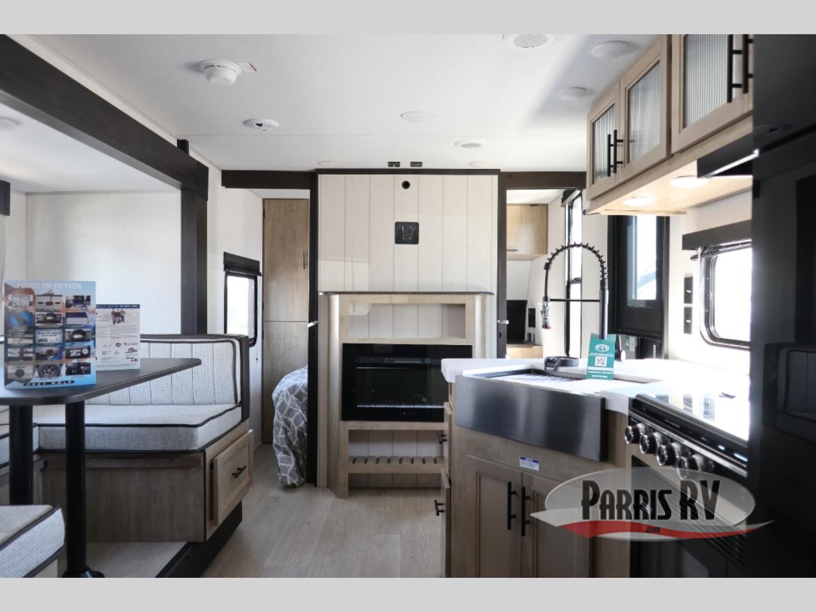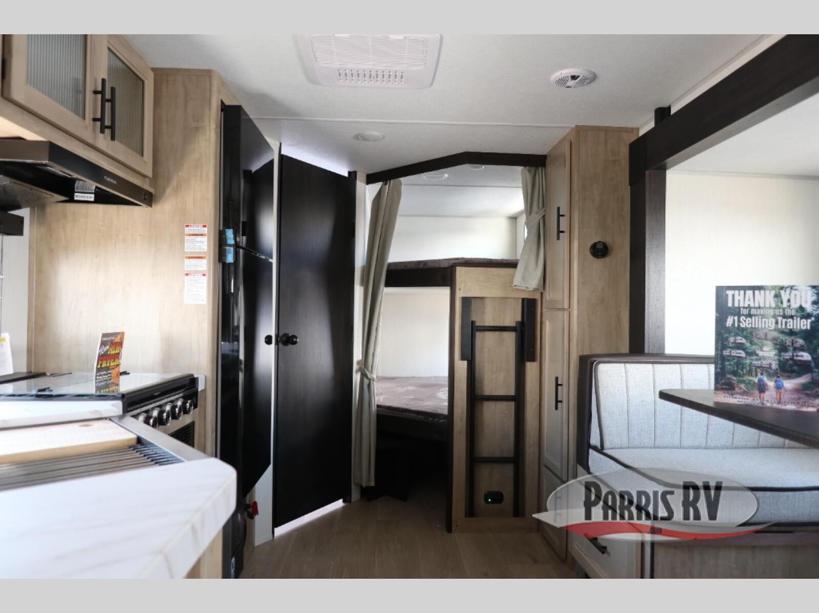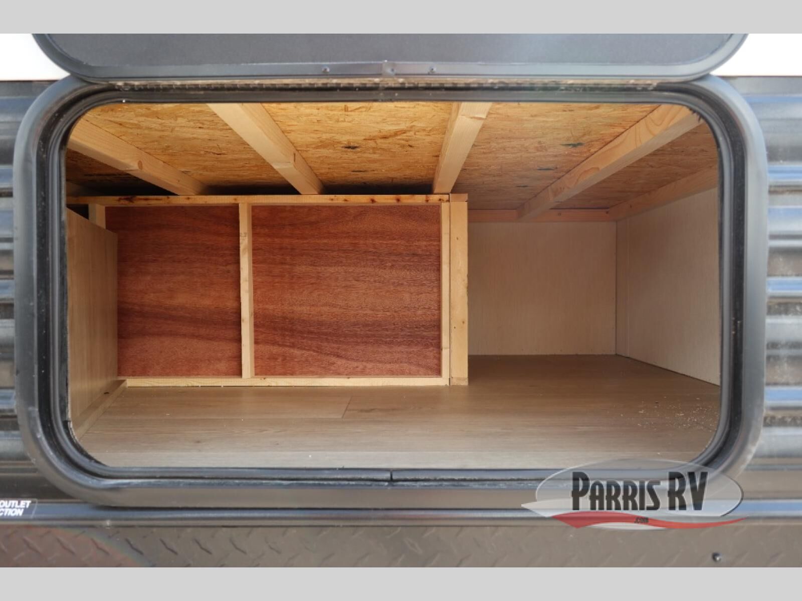 You will love the space provided in this dual entry Cherokee Grey Wolf travel trailer that has double-size bunks! The rear entry door leads right into the full bath allowing easy access from outside when you need to use the bathroom while you're enjoying the great outdoors. The large U-shaped dinette slide will not only seat everyone comfortably for a meal or a game, but since it also slides out, it opens up the interior even more to give you plenty of space for foot traffic. For all of your outdoor gear, you will find the outside storage compartments handy for stowing away your things when not in use. While the kids enjoy their bunk beds, you will enjoy a good night's rest in your RV king bed with wardrobes on either side up in the front private bedroom!