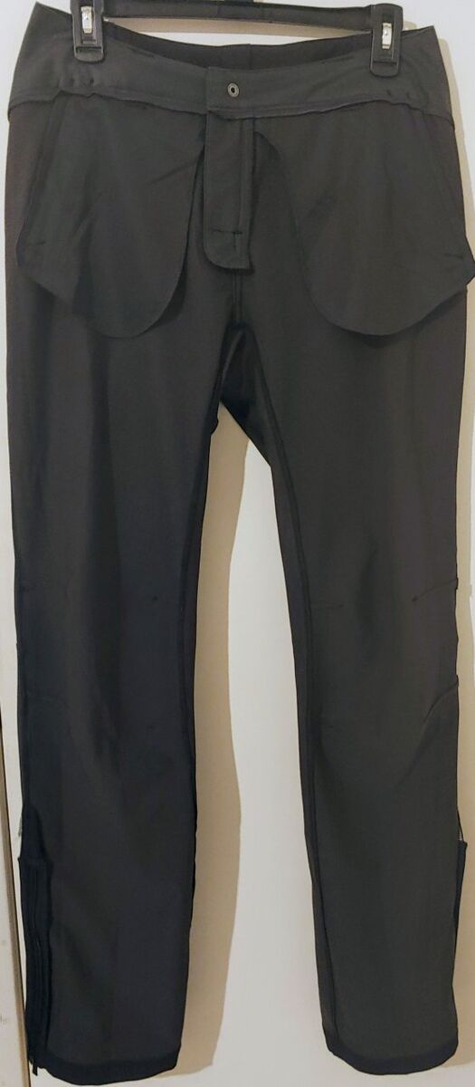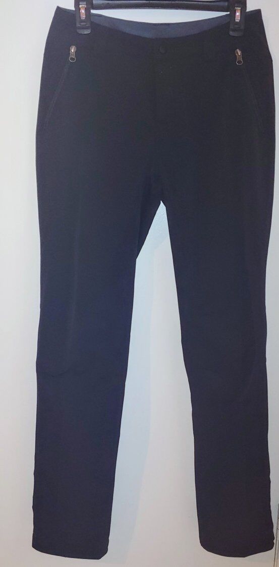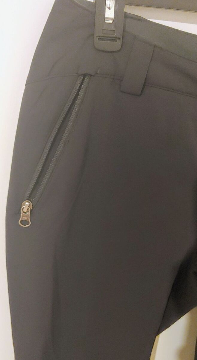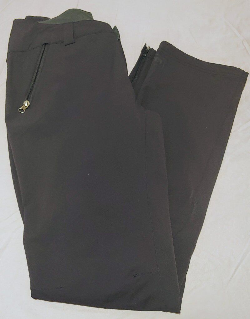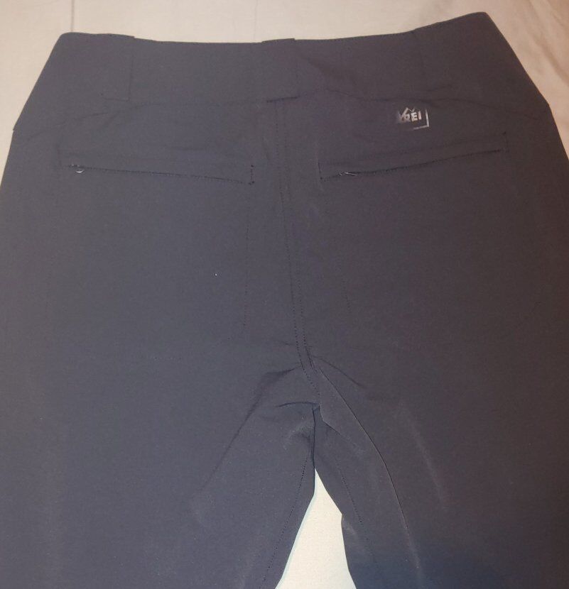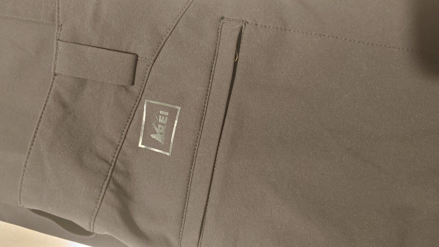Very nice, durable, well-made REI (not REI Co-op) pants with many details. Made with a thicker fabric of a nylon/polyester/spandex blend to keep you dry. Has a semi-brushed finish on the inside to keep you very warm, belt loops, secure zippered front and back pockets, and zippers at the ankle to wear boots with ease.