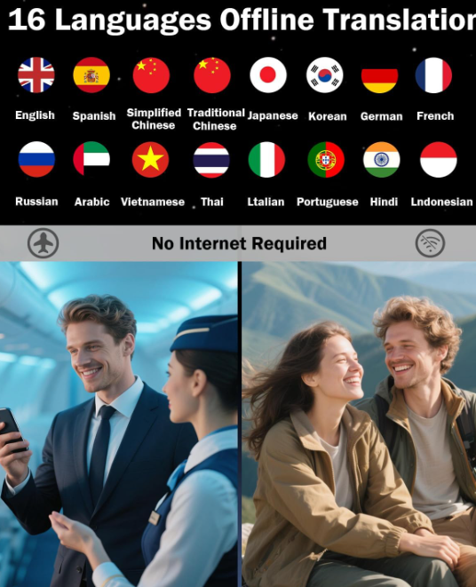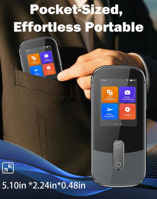 Zelle144 Languages AI Translator: Break down language barriers effortlessly with our advanced translator supporting 144 online languages and 16 offline languages. Whether you're traveling abroad, attending international meetings, or studying foreign languages, this device ensures seamless communication anywhere—no WiFi required for offline translation. Real-Time Language Translator Device: Powered by next-generation AI, our translator delivers ultra-fast 0.5s voice translation with 98% accuracy. Perfect for fast-paced conversations, whether you're negotiating deals or asking for directions. 2.4" HD Touchscreen & Dual Control Interface: Features 2.4-inch HD touchscreen with adjustable text size, touch screen and physical buttons for all-age accessibility. The noise-canceling speaker system ensures crystal-clear audio even in crowded airports or busy streets. 500MP Camera for Instant Text Translation: Simply point the high-resolution 500MP camera at menus, road signs, or documents to get instant text translations—ideal for restaurant ordering, navigation, and academic research. Auto-focus and low-light enhancement ensure readable results. Extended Battery & Portable Design: Engineered for travelers with a long-lasting battery, up to 35 hours continuous use and lightweight only 260g, pocket-sized design. USB-C fast charging only 1.5 hours. Battery performance may vary based on usage.