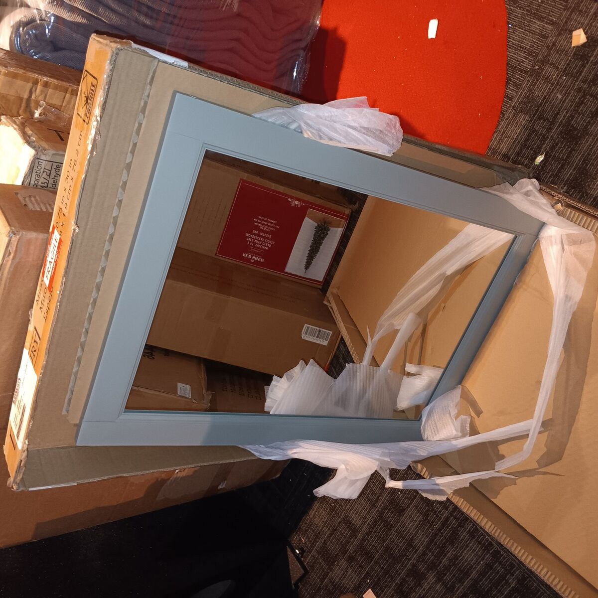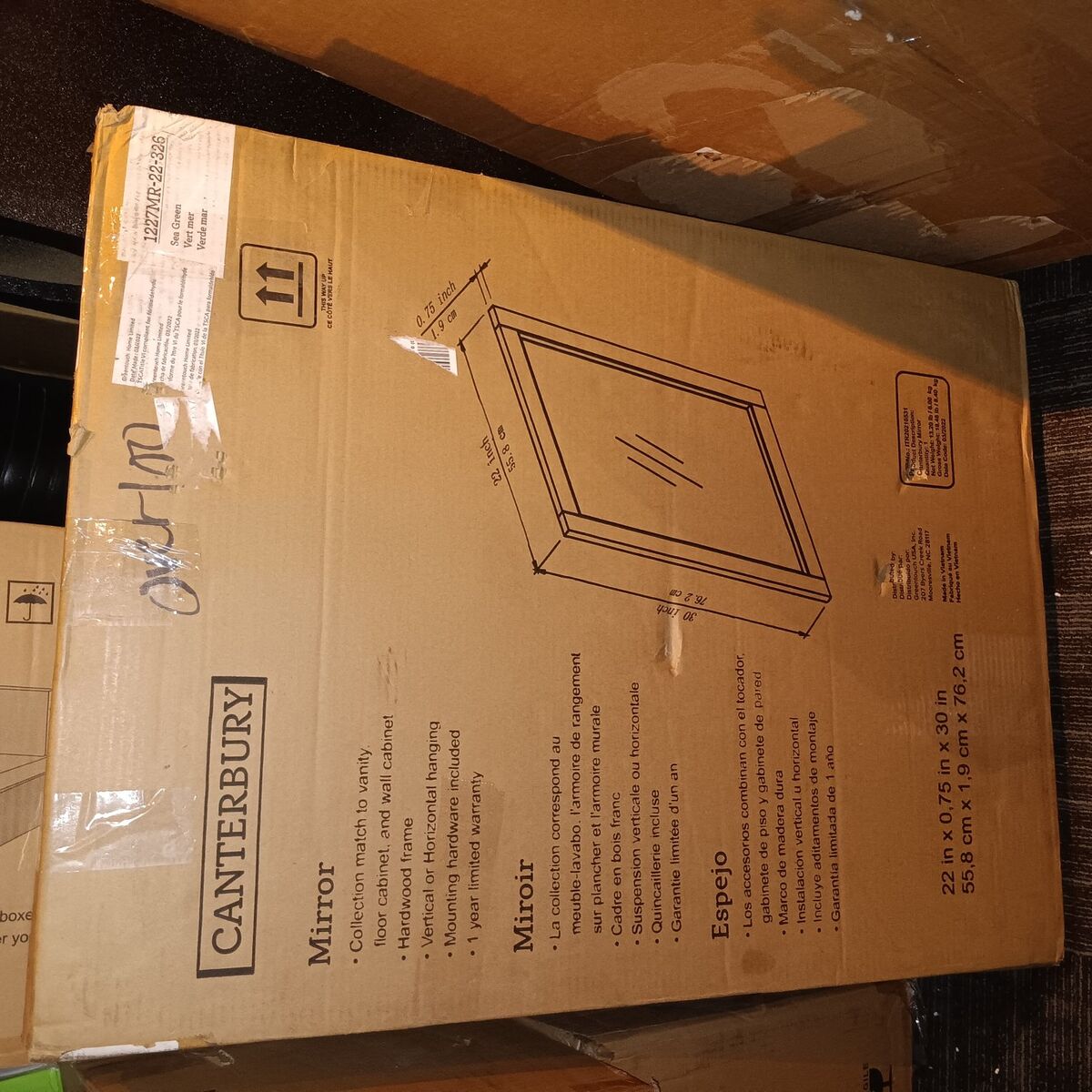 new in box allen + roth Canterbury 22-in x 30-in Framed Bathroom Vanity Mirror (Sea Green)