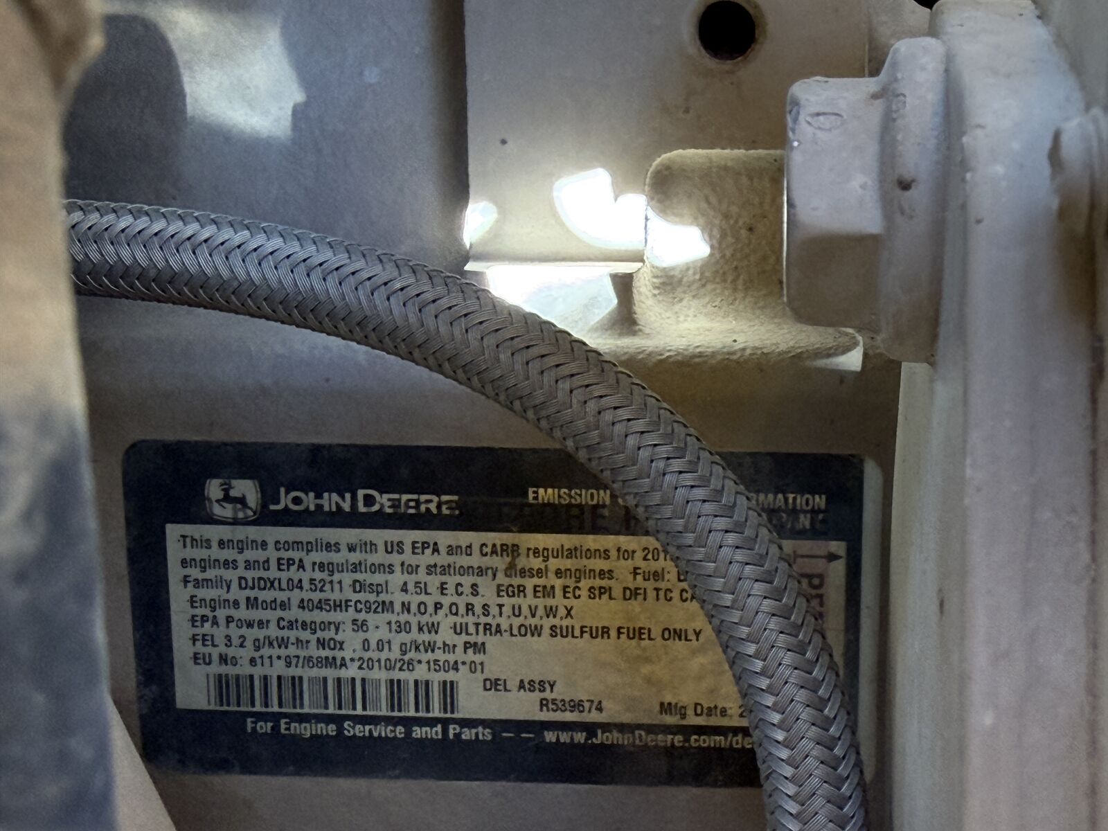 DRIVE Engine Type: 4.5L John Deere 4 Cylinder Turbo Diesel Engine Condition: Good cold start, Good compression, Cylinder balance normal, Good power, No blowby Trans Type: 3 Speed Powershift Trans Condition: Good. Operation normal Final Drives: Good Power Steering: Good. Operation normal Steering: Good. 4 Wheel and Crab steering Hydraulics: Good. All function and timing within specs Fluid Levels: Good