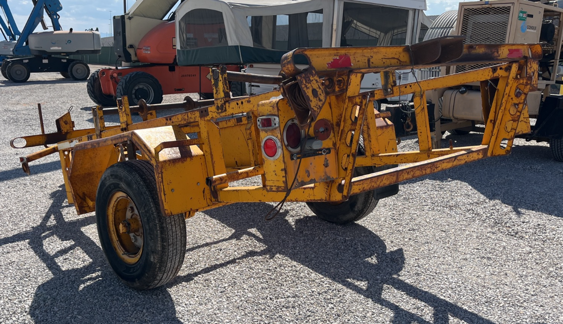 This trailer is set up for safe transport and payout of a single large cable reel – deal for telecom fiber builds, powerline work, and contractor fleets.