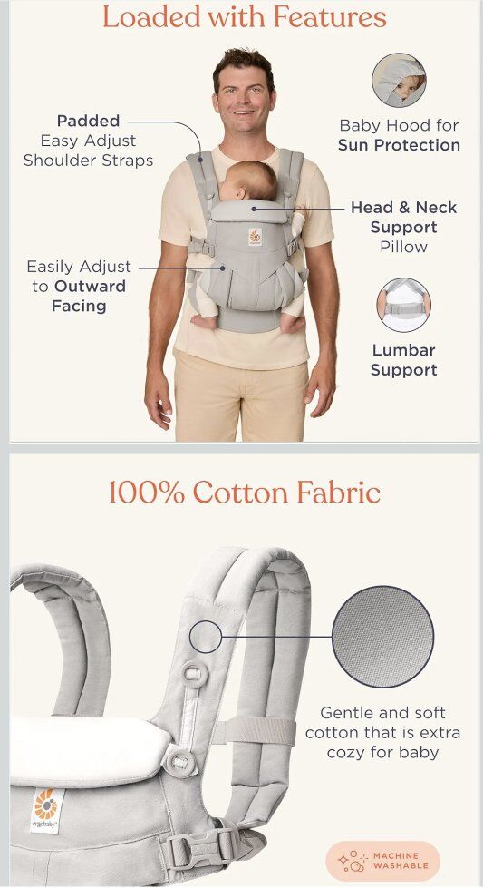 ApplePayexcellent condition like new Ergobaby Omni Classic Baby Carrier Newborn to Toddler - Breathable Baby Carriers for Summer - All-Position Carrier with Lumbar Support (7-45 Pounds), Cotton, Pure Black Top highlights ColorPure Black BrandErgobaby Strap TypeFixed Strap Product Care InstructionsMachine Wash Minimum Weight Recommendation7 Pounds Maximum Weight Recommendation45 Pounds CLASSIC ALL-IN-ONE CARRYING VERSATILITY - The ErgoBaby Omni Classic Carrier is designed to grow with your child, supporting babies from newborn to toddler (7–45 lbs) with no separate infant insert needed. This front facing baby carrier allows multiple carry positions including inward, outward, hip, and back carry for ultimate flexibility. SOFT & BREATHABLE COTTON DESIGN - Crafted from 100% premium cotton, this toddler carrier provides a cozy yet supportive feel for both parent and baby. The fabric’s natural softness makes it ideal for daily wear without sacrificing breathability, making it a reliable breathable baby carrier for summer. COMFORT THAT LASTS ALL DAY - Featuring padded shoulder straps and a lumbar support waist belt, this baby holder carrier ensures exceptional lower back comfort for parents. The adjustable waist and strap design also accommodates wearers of various sizes and offers post-C-section-friendly options. ERGONOMIC SUPPORT THROUGH EVERY STAGE - The adjustable bucket seat ensures your baby is always supported in the recommended “M” position for healthy hip development. Recognized as a hip-healthy baby carrier by the International Hip Dysplasia Institute, it’s the ideal choice for growing babies. INTUITIVE & EASY TO USE - With its one-handed slider mechanism, this baby carrier with hip seat functionality allows quick position adjustments even while on the go. Simple to put on and take off, it offers a stress-free experience that makes baby carriers more convenient than ever.
