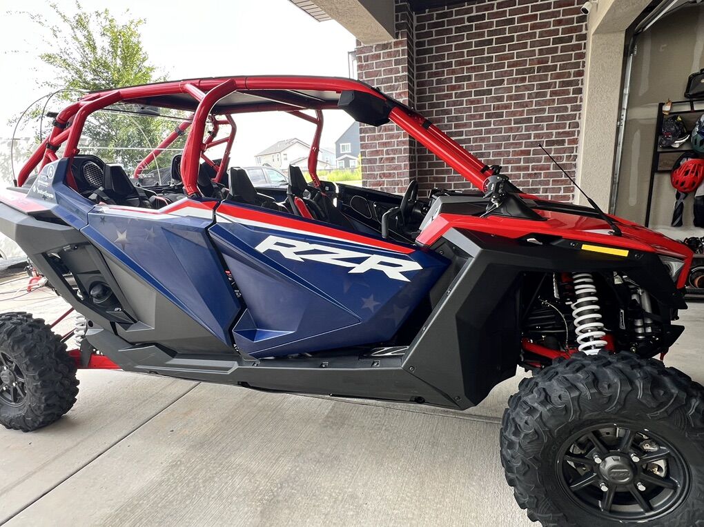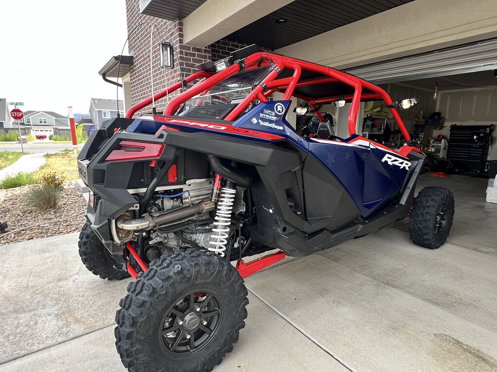 Like new but better with upgrades 2022 Polaris RZR Pro XP 4 Ultimate Rockford Fosgate Limited Edition Dynamic X Edition ** Only 815 Miles!!! multiple Light Bars Roof Rear Windshield Half front brand new Windshield Super ATV Winch LED rock crawler lights LED interior lights LED two fat whips Follow strobe light Rear view mirror Front camera Flag Mounts Etc. ** Street legal…mirrors, blinker, horn.