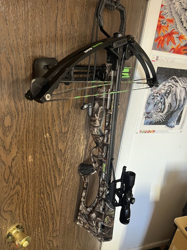VenmoBarnett quad 400 crossbow. Good strings, nice scope, everything is in great condition. Comes with three 22” blunt tip arrows and a detachable aluminum quiver. Only shot a few arrows through. Just don’t use anymore. These retail for $400 new and it’s barely been used. Asking $200 O.B.O. Make an offer.
