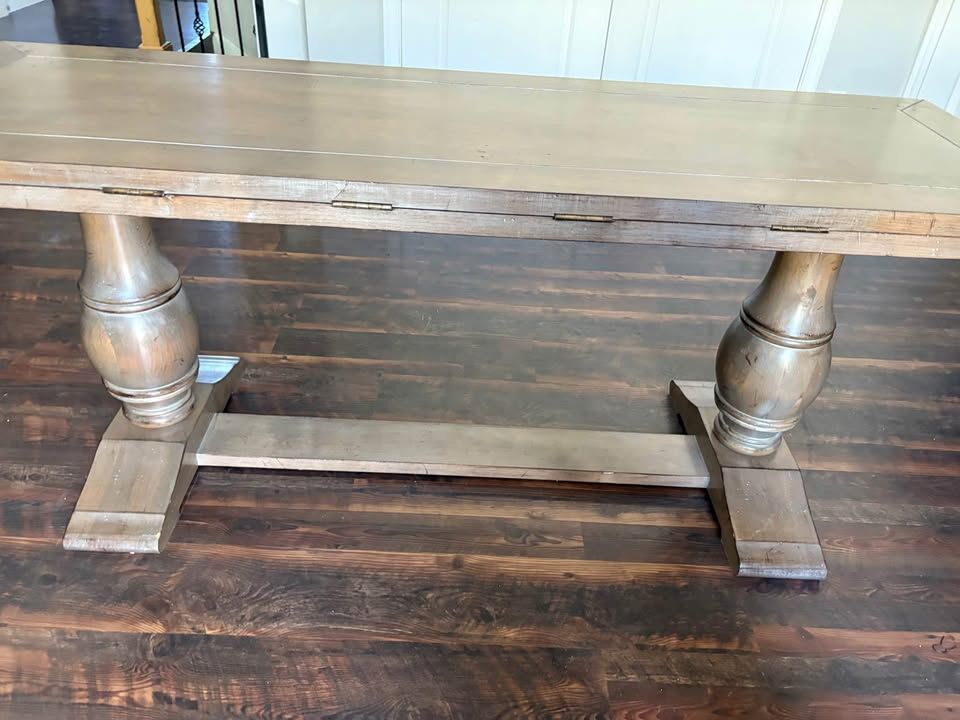 VenmoRustic gray color Lorts Drop Leaf Console Table. Measure 72” x 24” deep x 30” tall. Extends to 84” x 44”. In Draper $350 cash/venmo