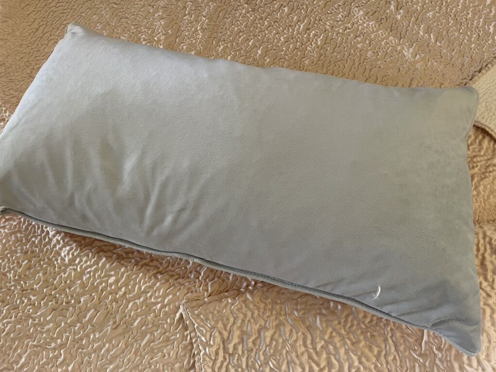 The Calvin Klein pillow is reversible with pink on one side and gray on the other. It feels like velvet and is 25 x 13 inches. See my other ads for jewelry, artwork, home decor and more.