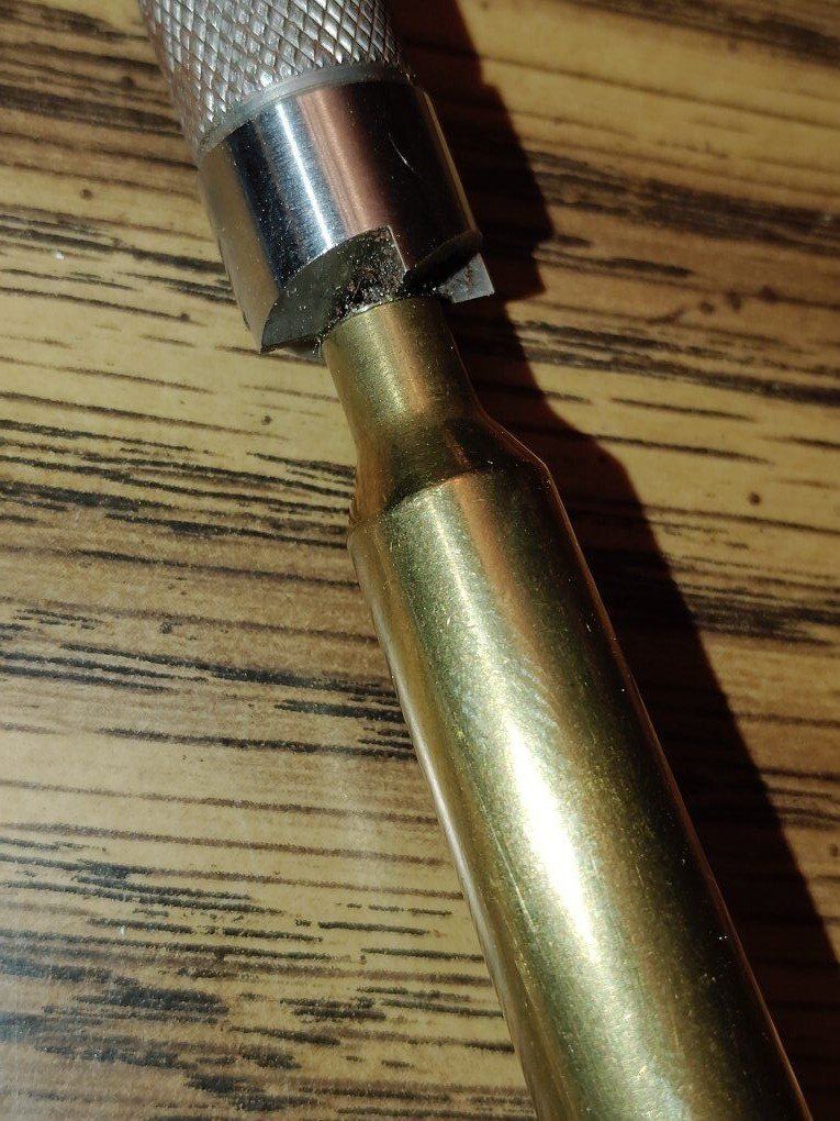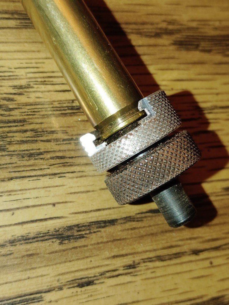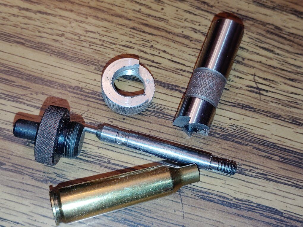 22-250 Winchester; Lee case trimmer cutter, Lee lock stud, Lee case length gauge and Lee shell holder.